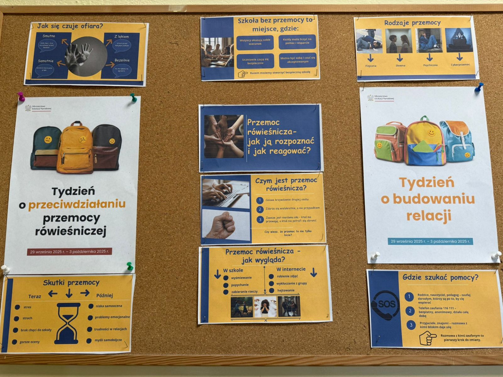 W naszej placówce w dniach 29.09 do 3.10.25r. realizowane są działania profilaktyczne w ramach ogólnopolskiej inicjatywy Ministerstwa Edukacji Narodowej pod hasłem „Tydzień przeciwdziałania przemocy rówieśniczej”.
