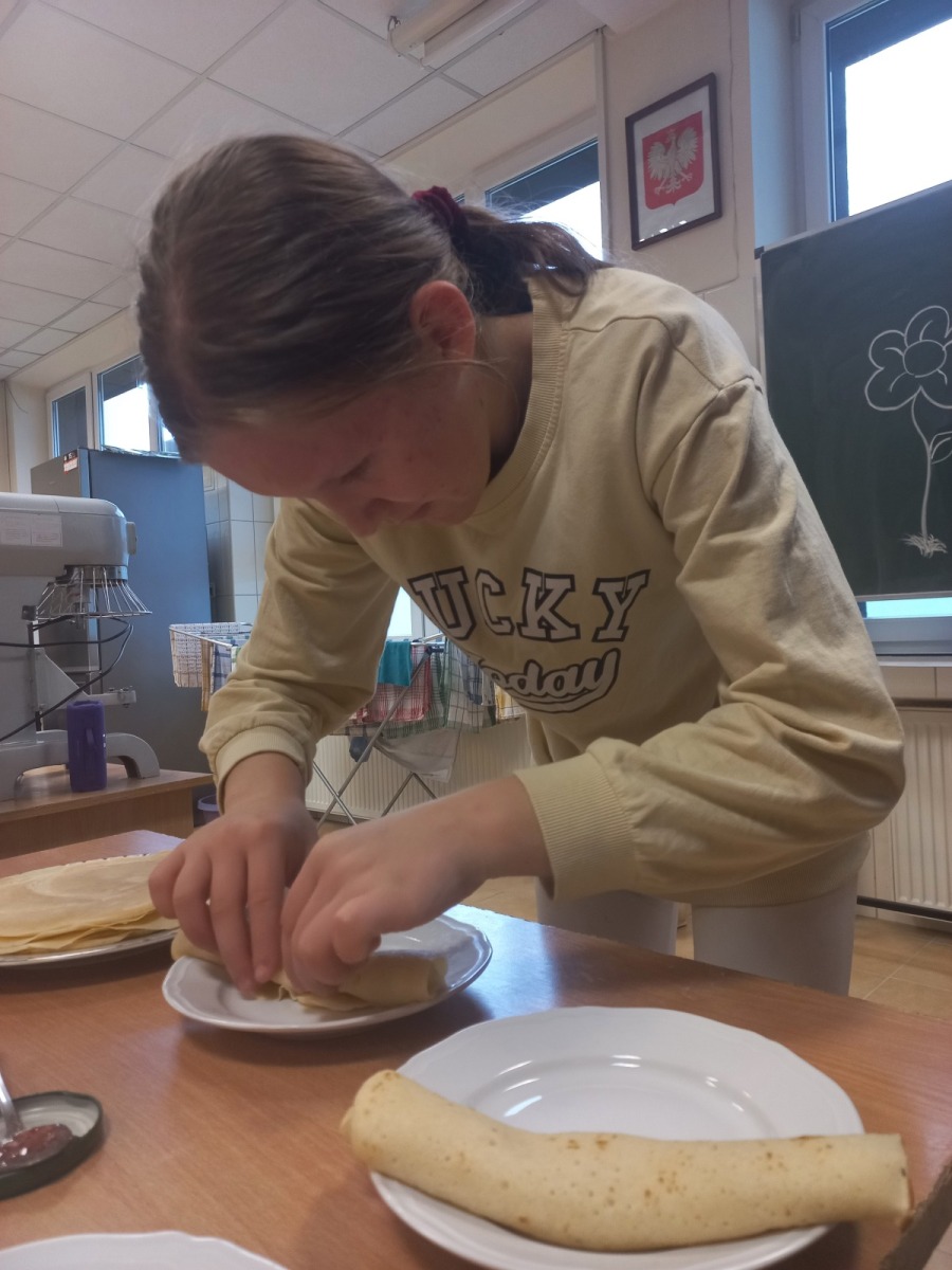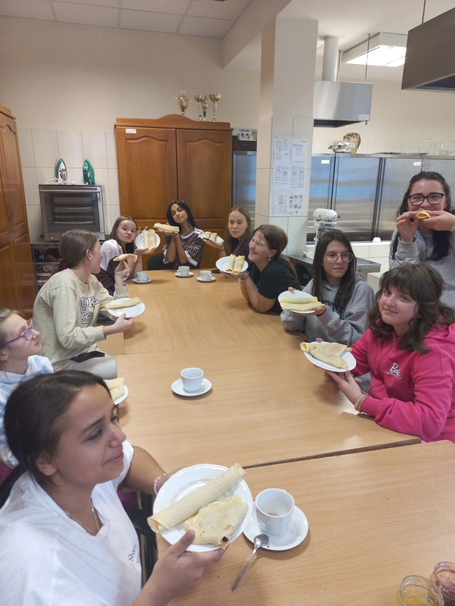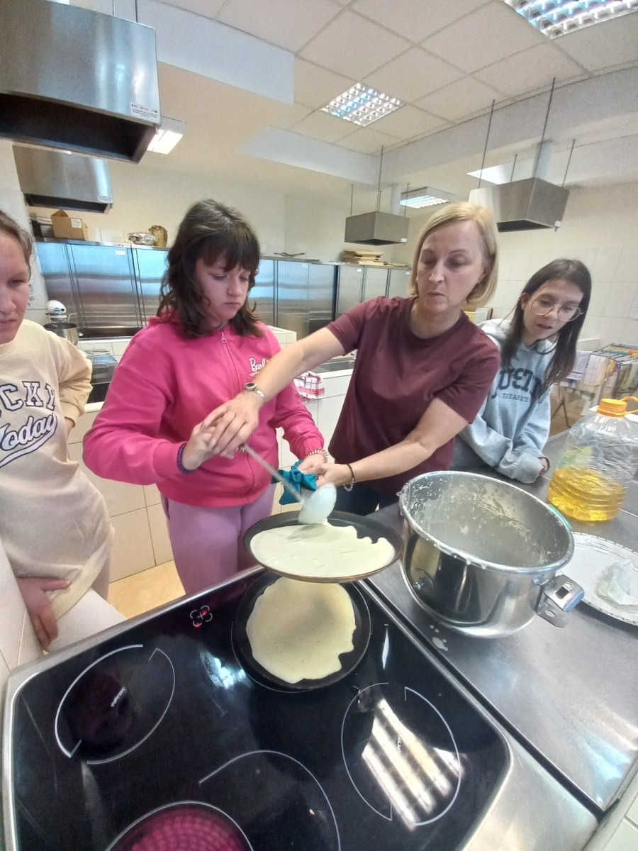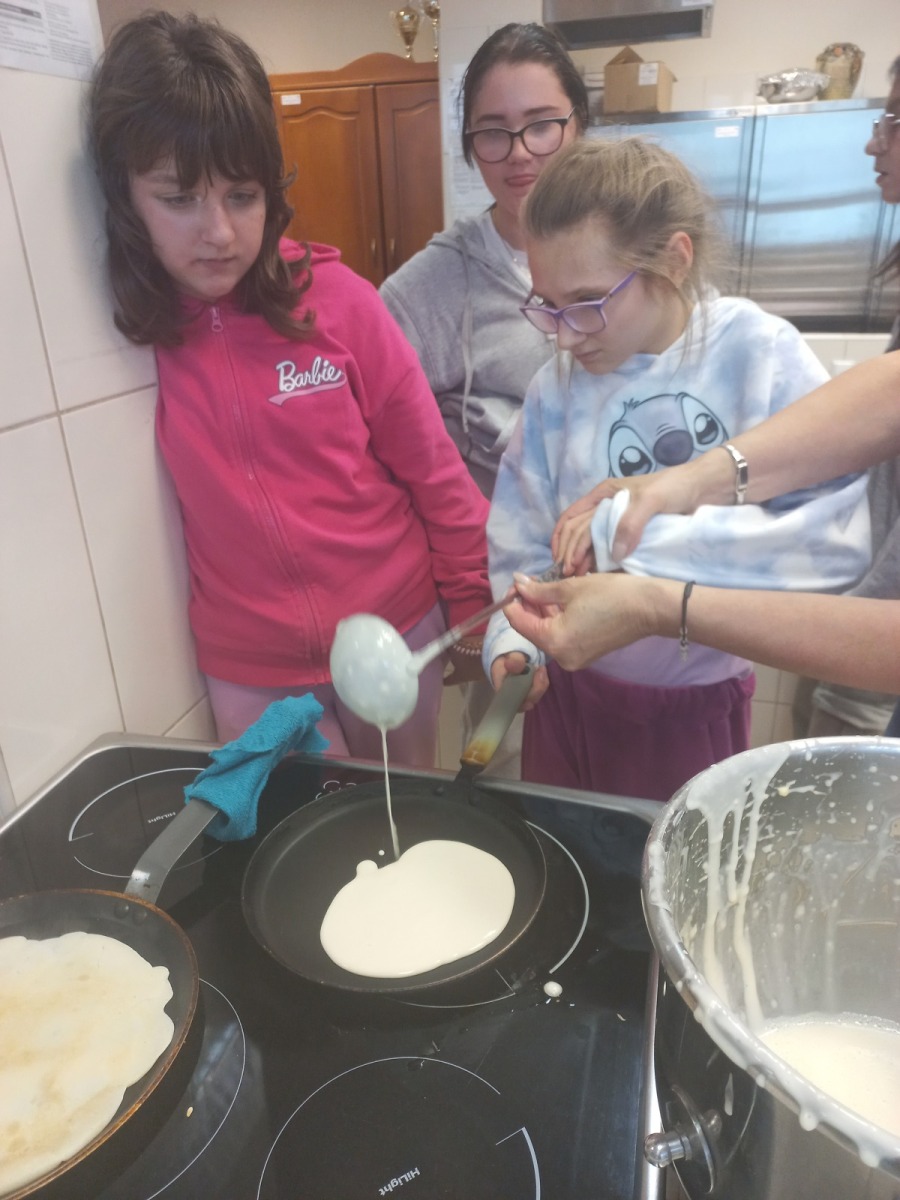 Wtorkowe popołudnie grupa X dziewczyn spędziła w pracowni kucharskiej przyrządzając pyszne naleśniki  i doskonaląc swoje umiejętności  kulinarne.  Naleśniki wyszły przepyszne. Smacznego.