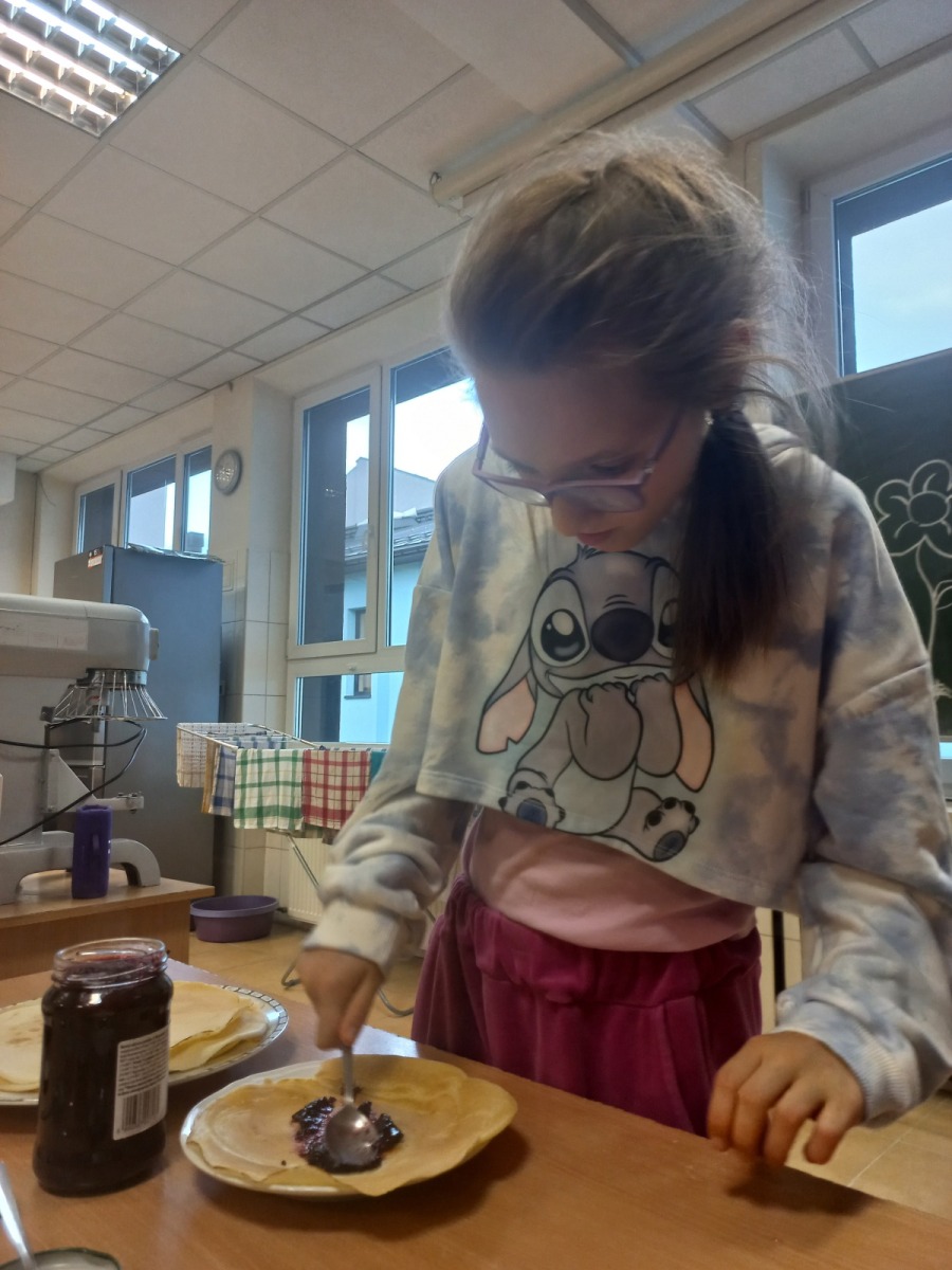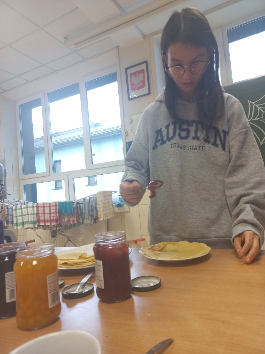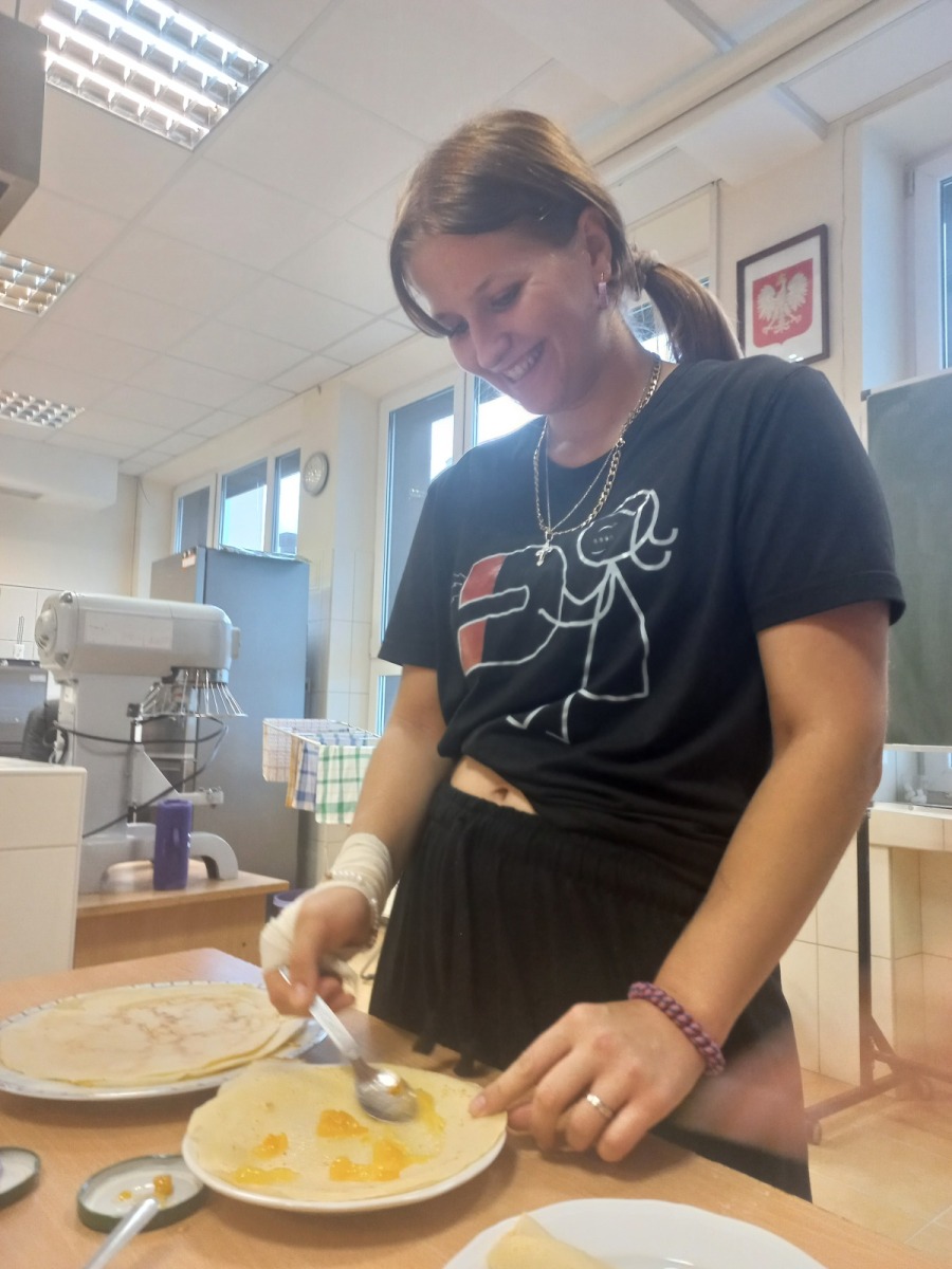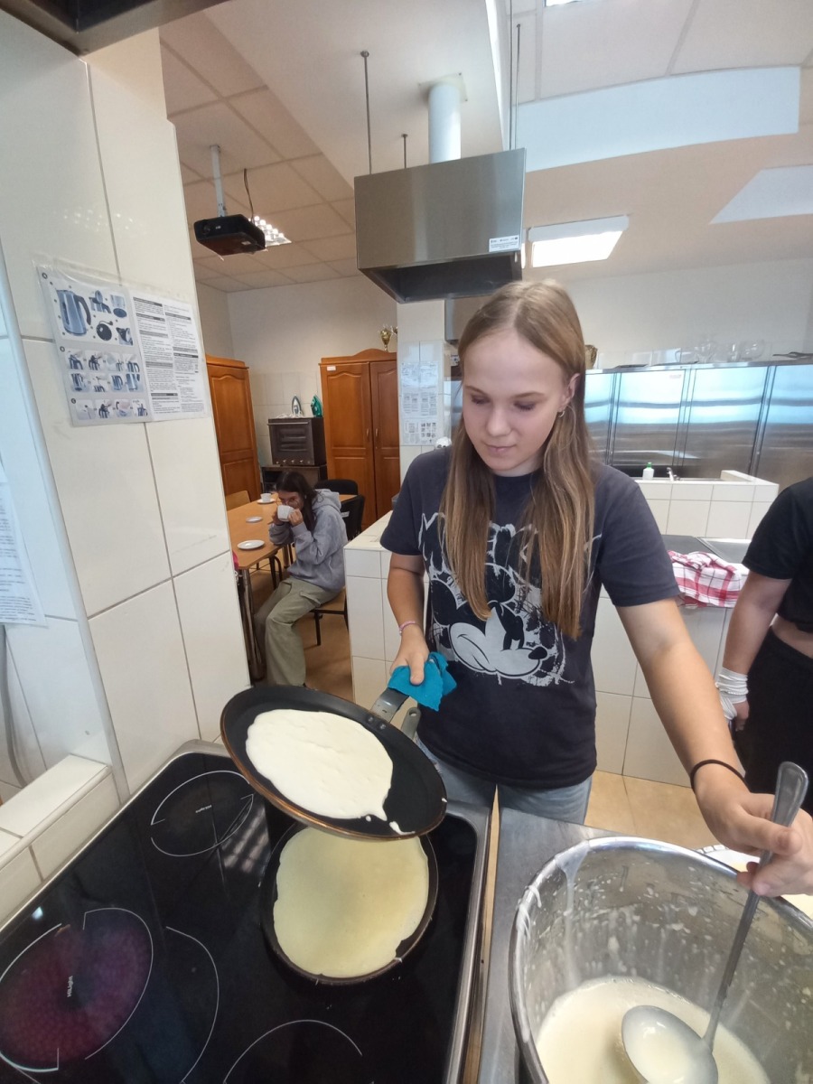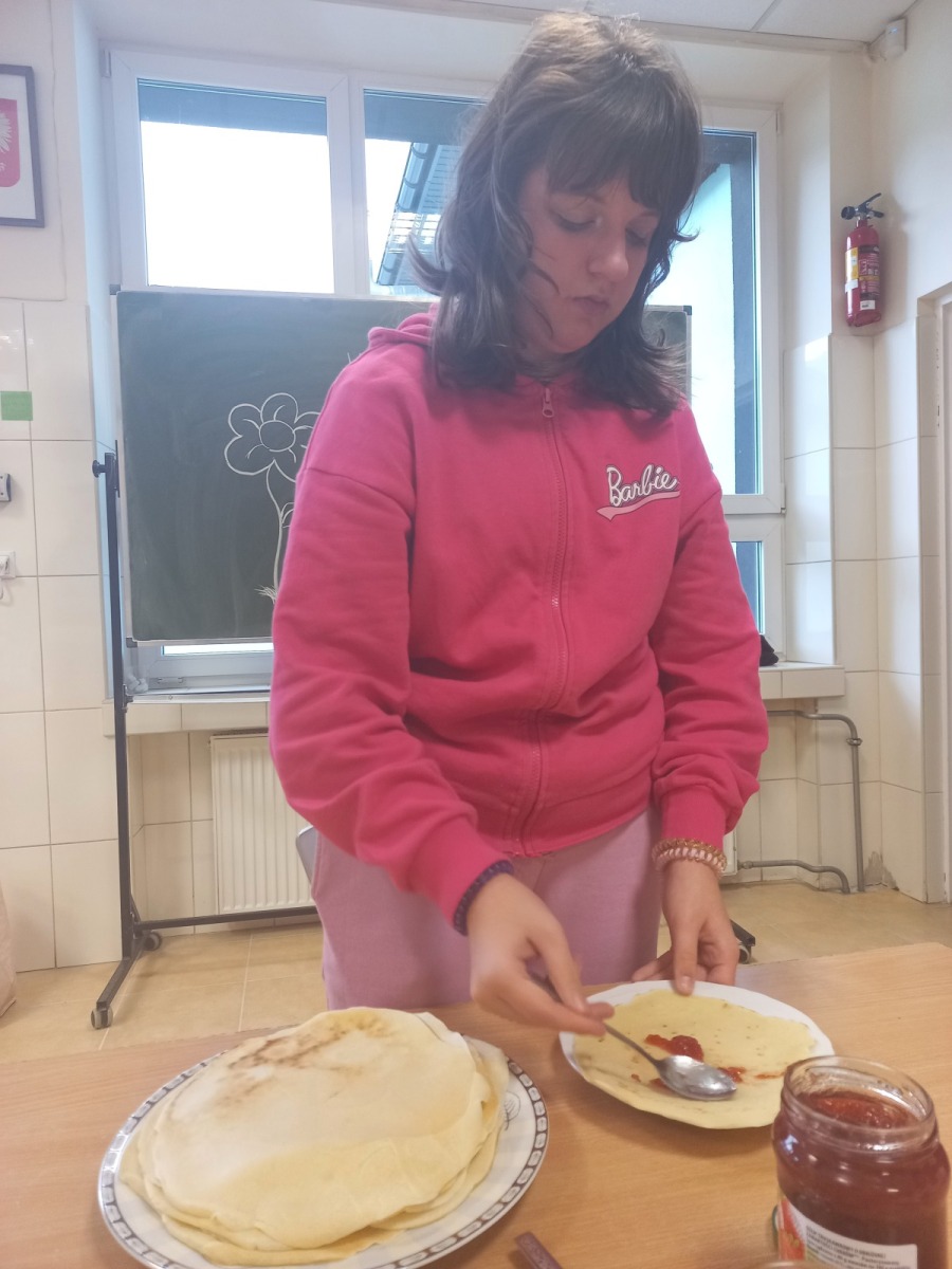 Wtorkowe popołudnie grupa X dziewczyn spędziła w pracowni kucharskiej przyrządzając pyszne naleśniki  i doskonaląc swoje umiejętności  kulinarne.  Naleśniki wyszły przepyszne. Smacznego.