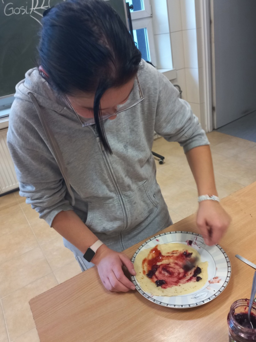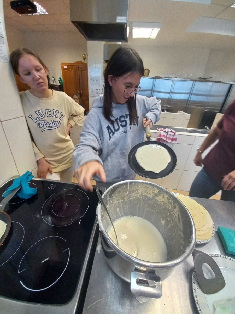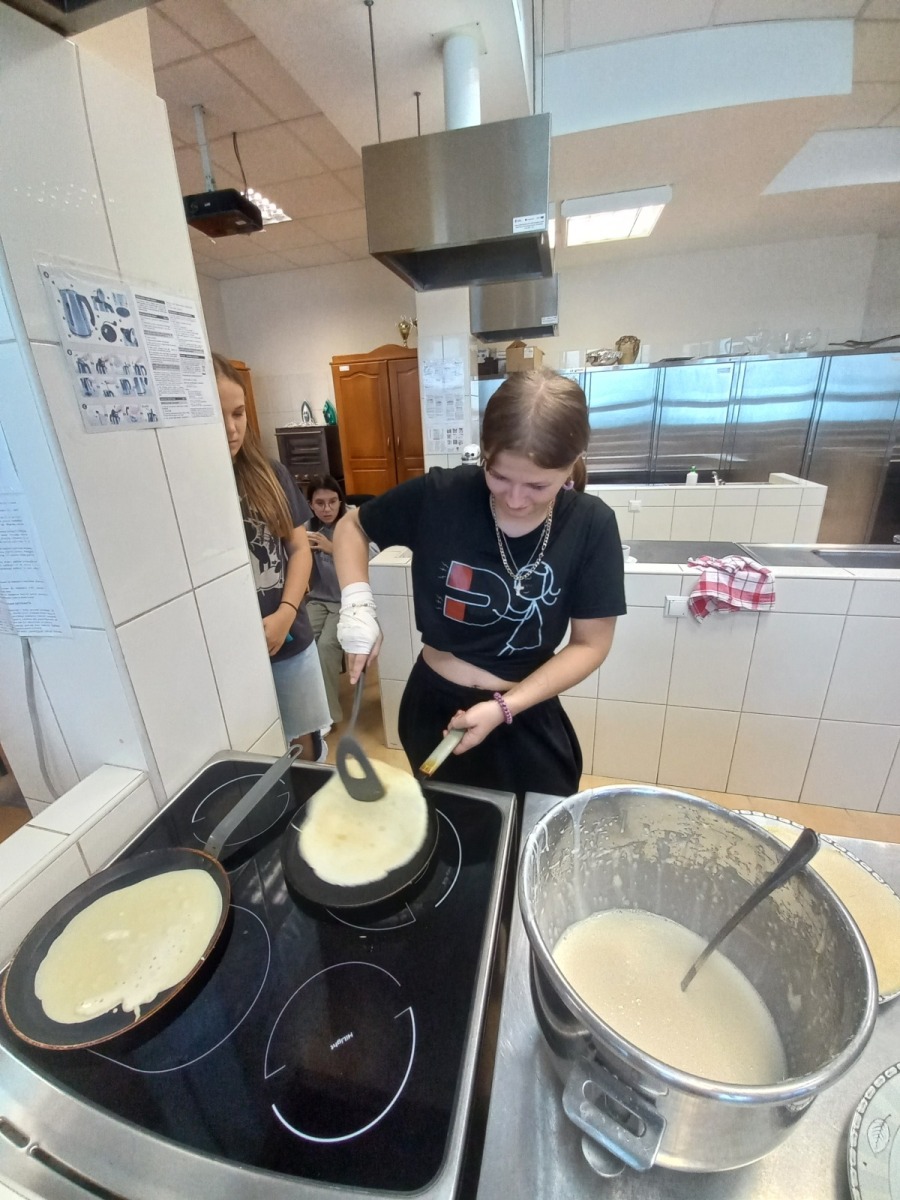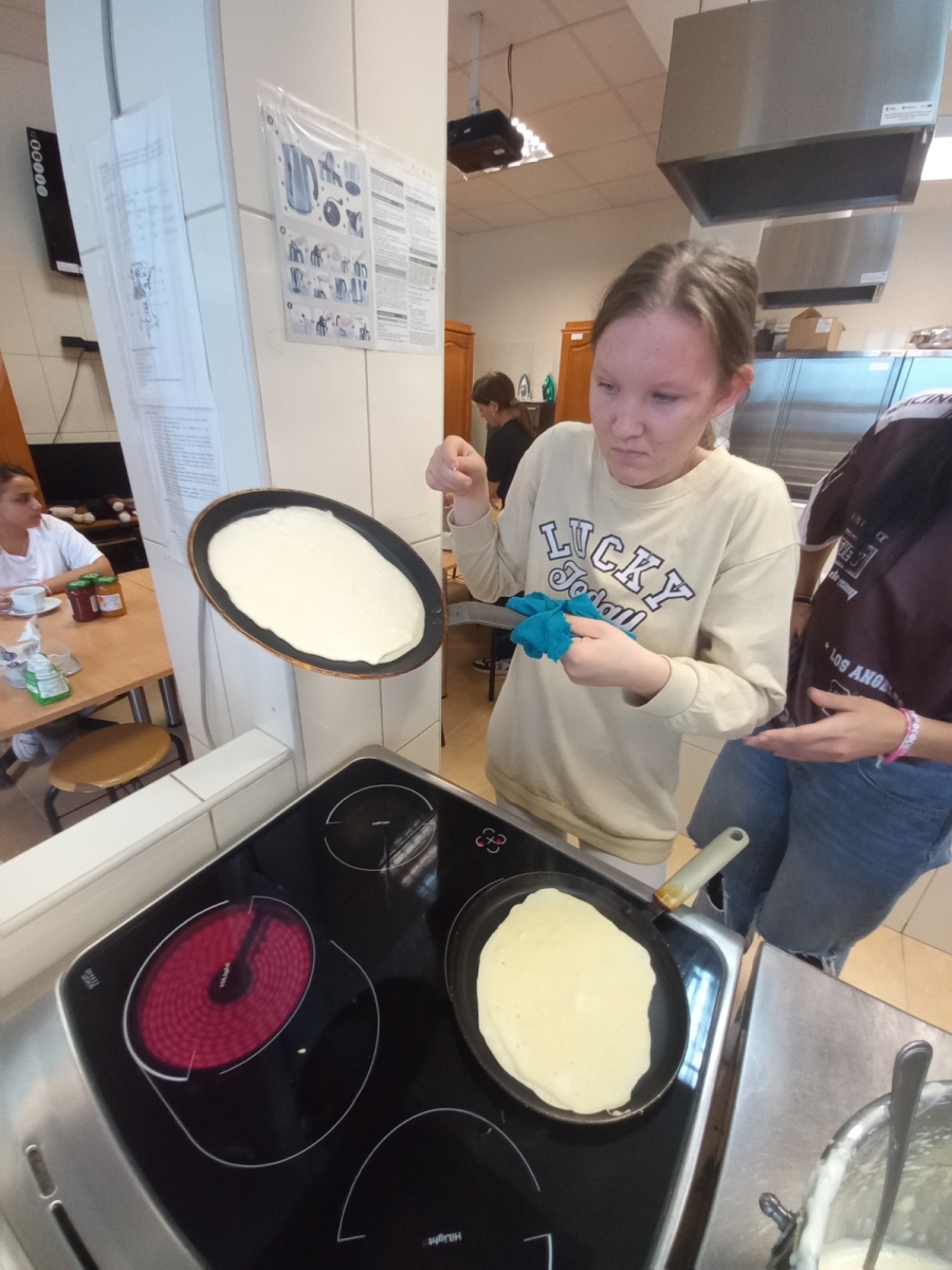 Wtorkowe popołudnie grupa X dziewczyn spędziła w pracowni kucharskiej przyrządzając pyszne naleśniki  i doskonaląc swoje umiejętności  kulinarne.  Naleśniki wyszły przepyszne. Smacznego.