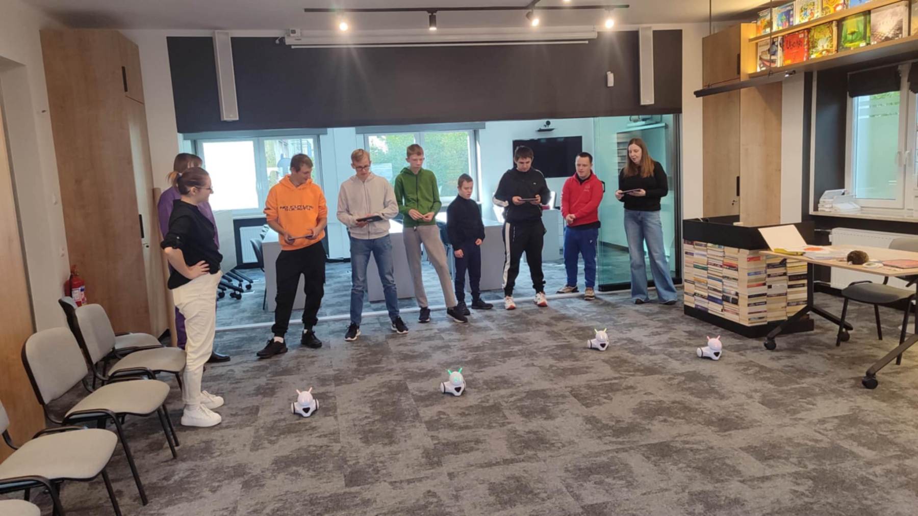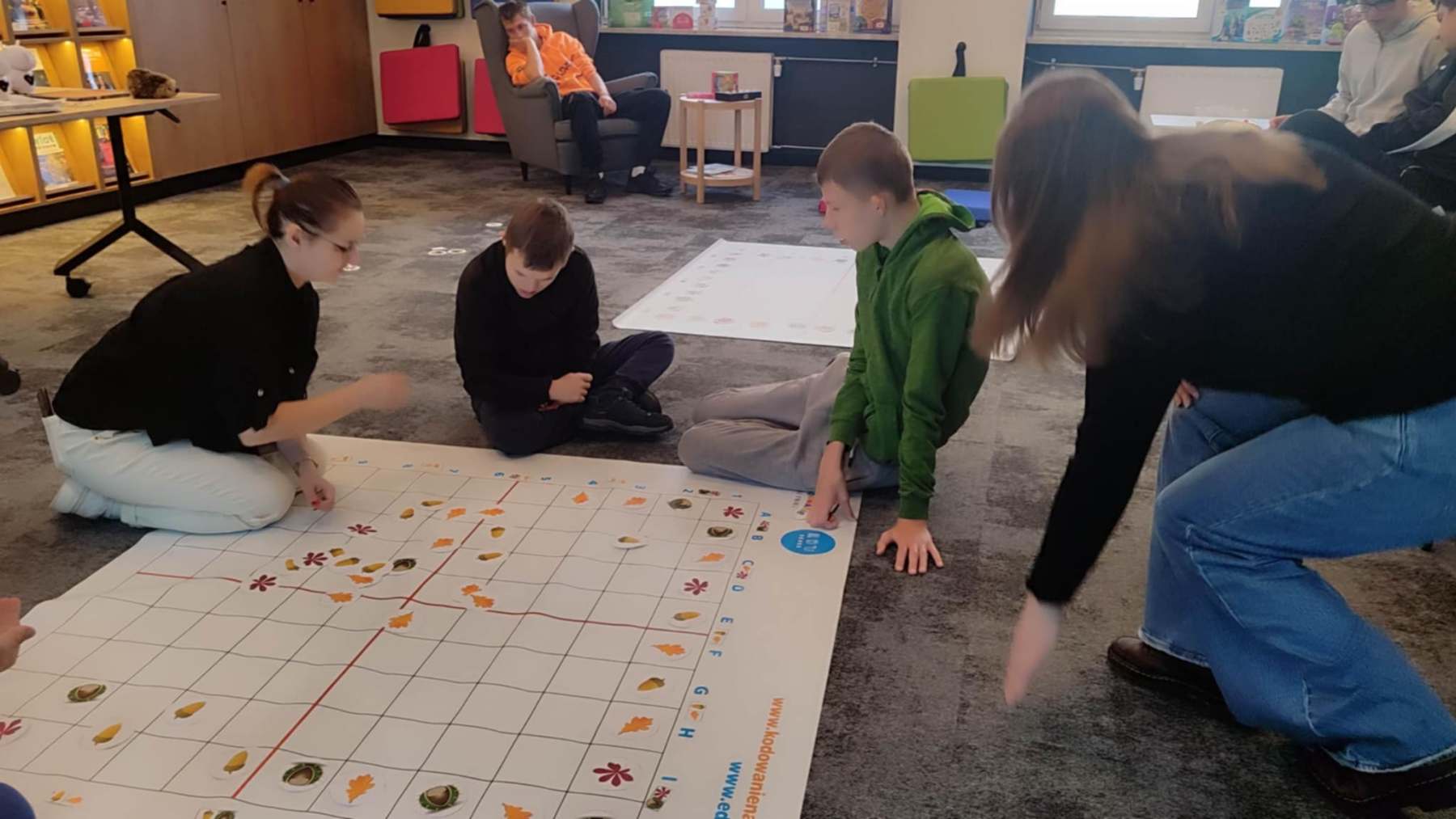 6 października 2025 roku OET 7c odwiedził Pedagogiczną Bibliotekę Wojewódzką w Nowym Sączu – Filię w Nowym Targu. Nowoczesna, odświeżona przestrzeń, pełna książek i inspiracji, od razu zrobiła na nas wrażenie. Ale najlepsze dopiero przed nami – trafiliśmy na zajęcia z kodowania i pracy z robotem Photonem. Najpierw wprowadzenie do programowania, a potem – wyzwanie! Naszym zadaniem było tak zaprogramować Photona, żeby przeszedł przez jesienny tor pełen niespodzianek. Z pomocą prowadzących i dzięki wspólnemu kombinowaniu udało się – Photon dał radę, a my razem z nim! Na tyle nam się spodobało, że od razu umówiliśmy się na kolejne zajęcia. Bo kodowanie z Photonem to nie tylko nauka, ale też świetna zabawa i… trochę gimnastyki dla mózgu