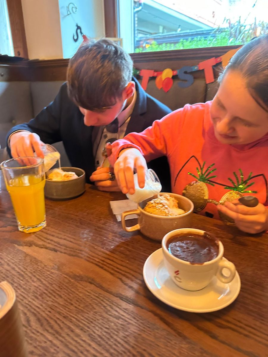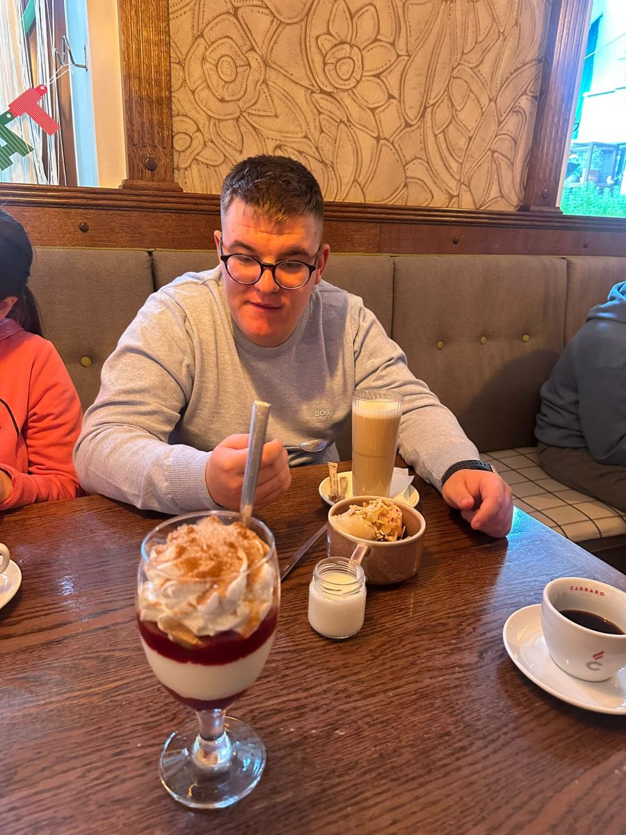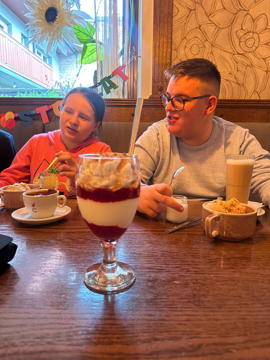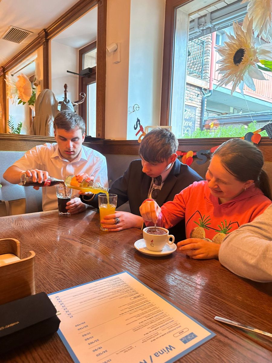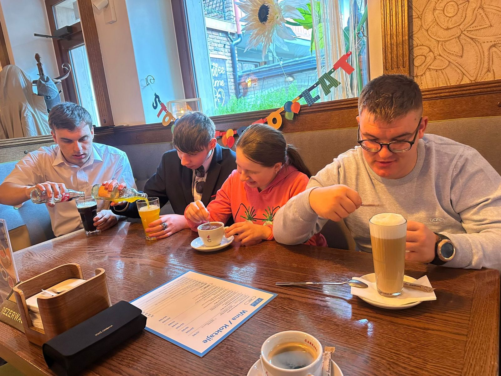 Dzisiaj obchodziliśmy 18 urodziny Maćka, który nie mógł się doczekać tego szczególnego dnia. Jubilat zaprosił swoją klasę do kawiarni. Był pyszny poczęstunek, życzenia i wymarzony prezent. Bardzo smacznie i miło spędziliśmy wspólnie czas.