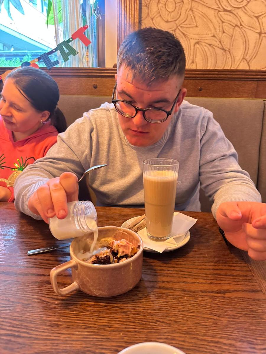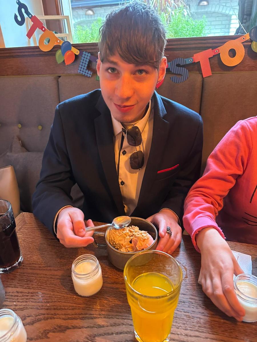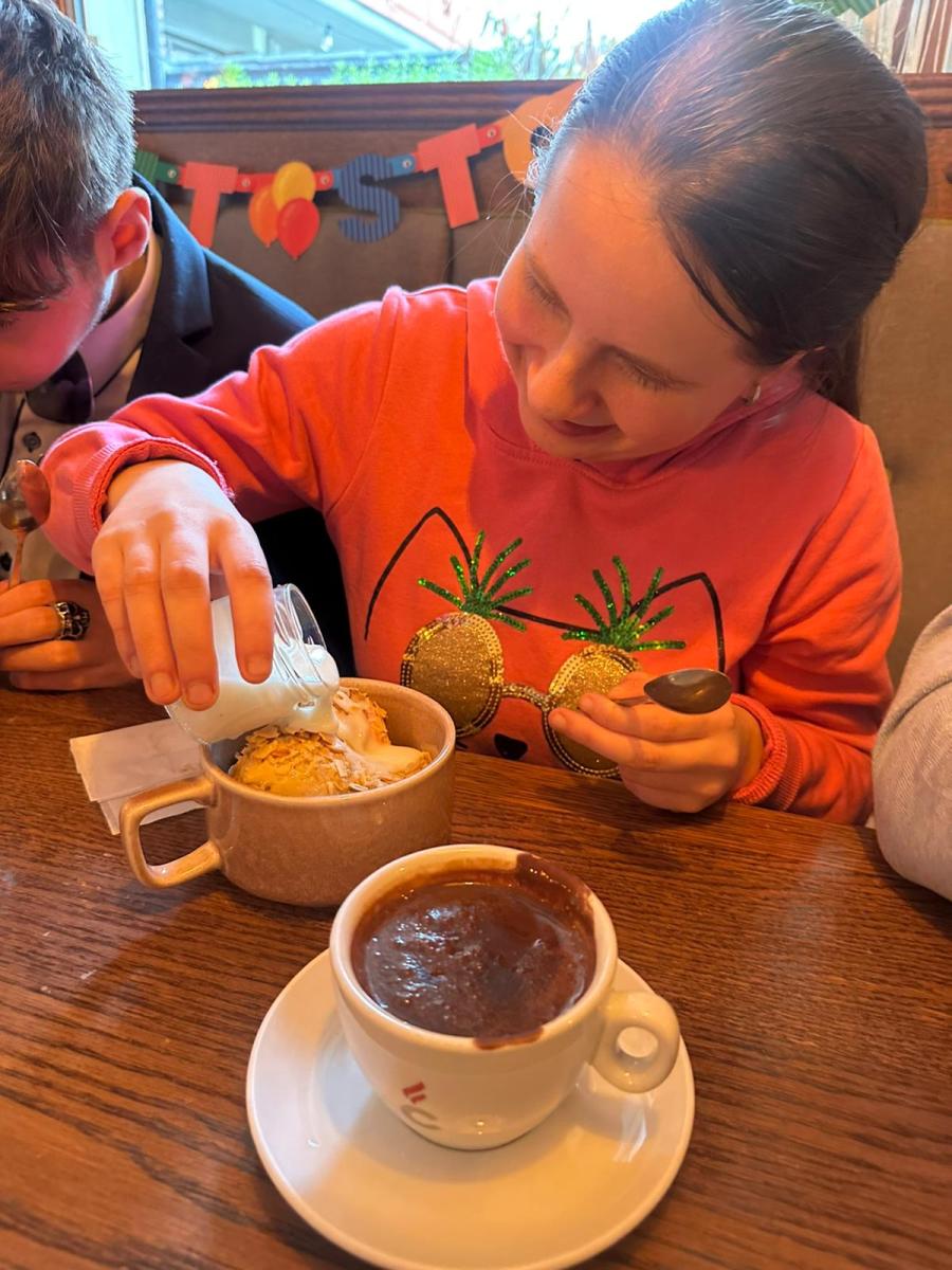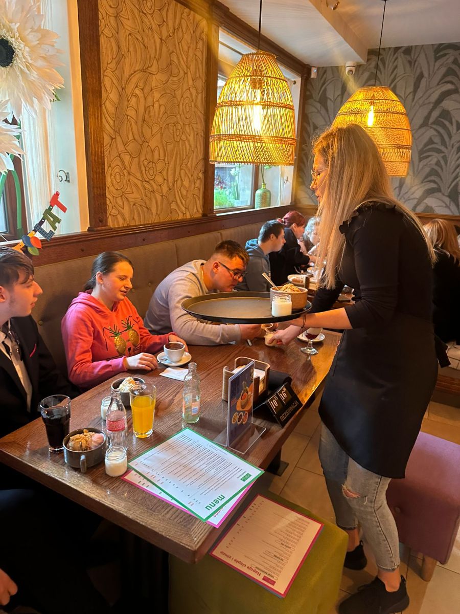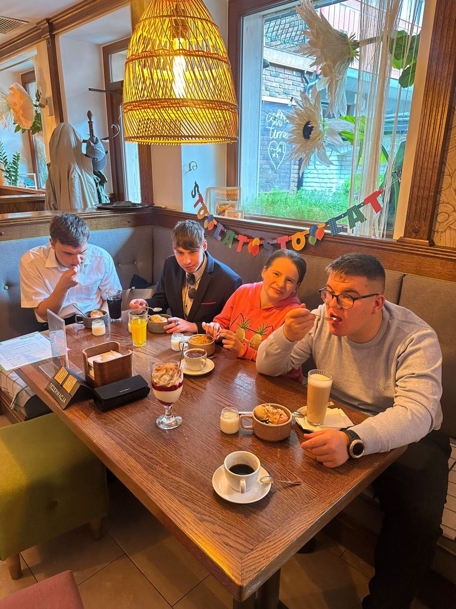 Dzisiaj obchodziliśmy 18 urodziny Maćka, który nie mógł się doczekać tego szczególnego dnia. Jubilat zaprosił swoją klasę do kawiarni. Był pyszny poczęstunek, życzenia i wymarzony prezent. Bardzo smacznie i miło spędziliśmy wspólnie czas.