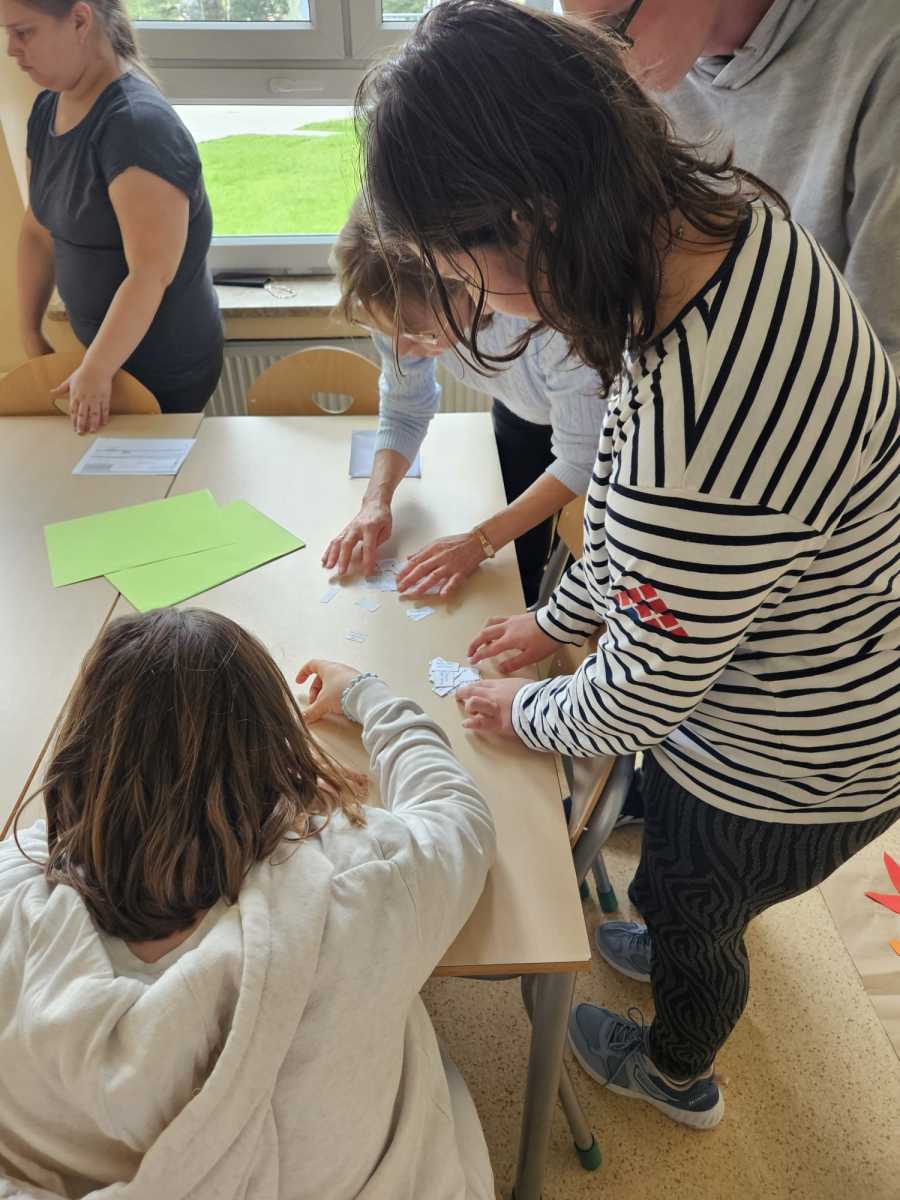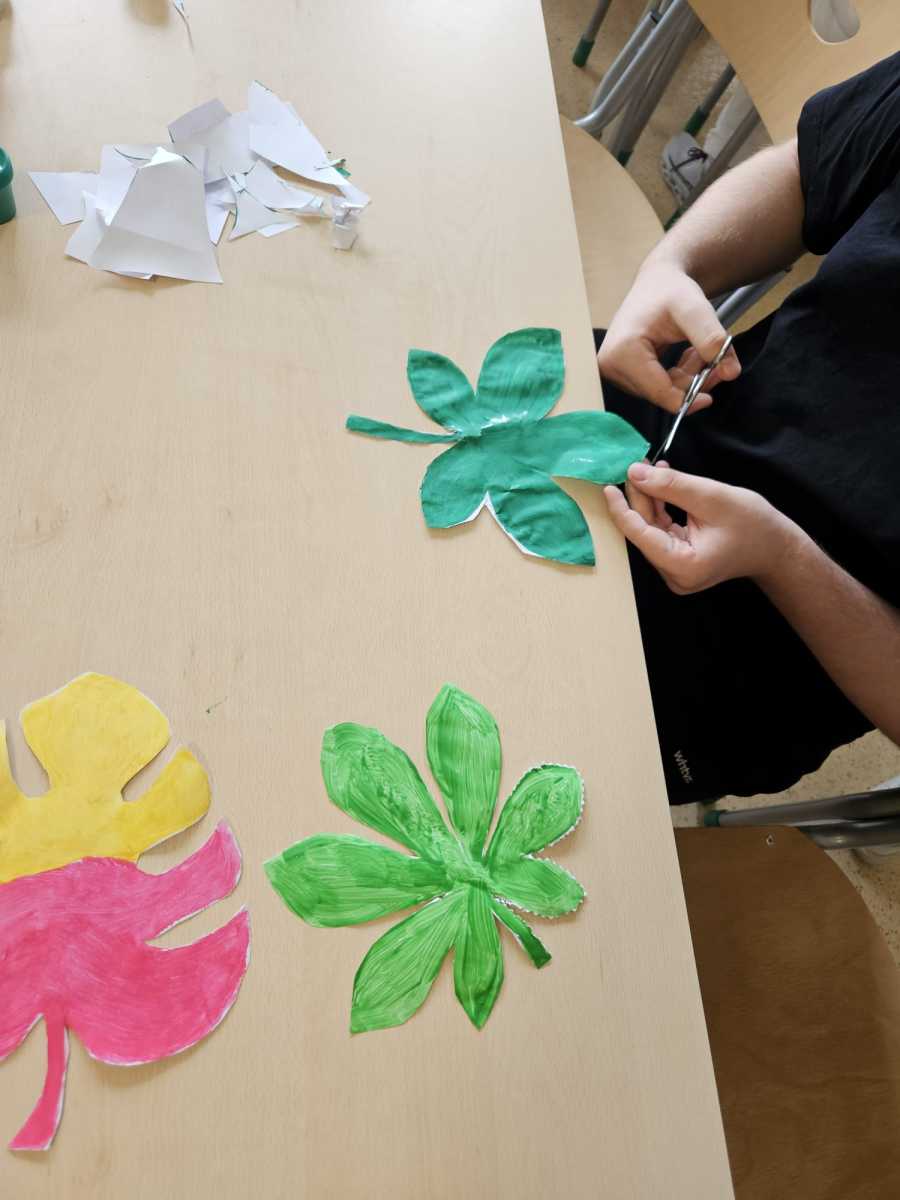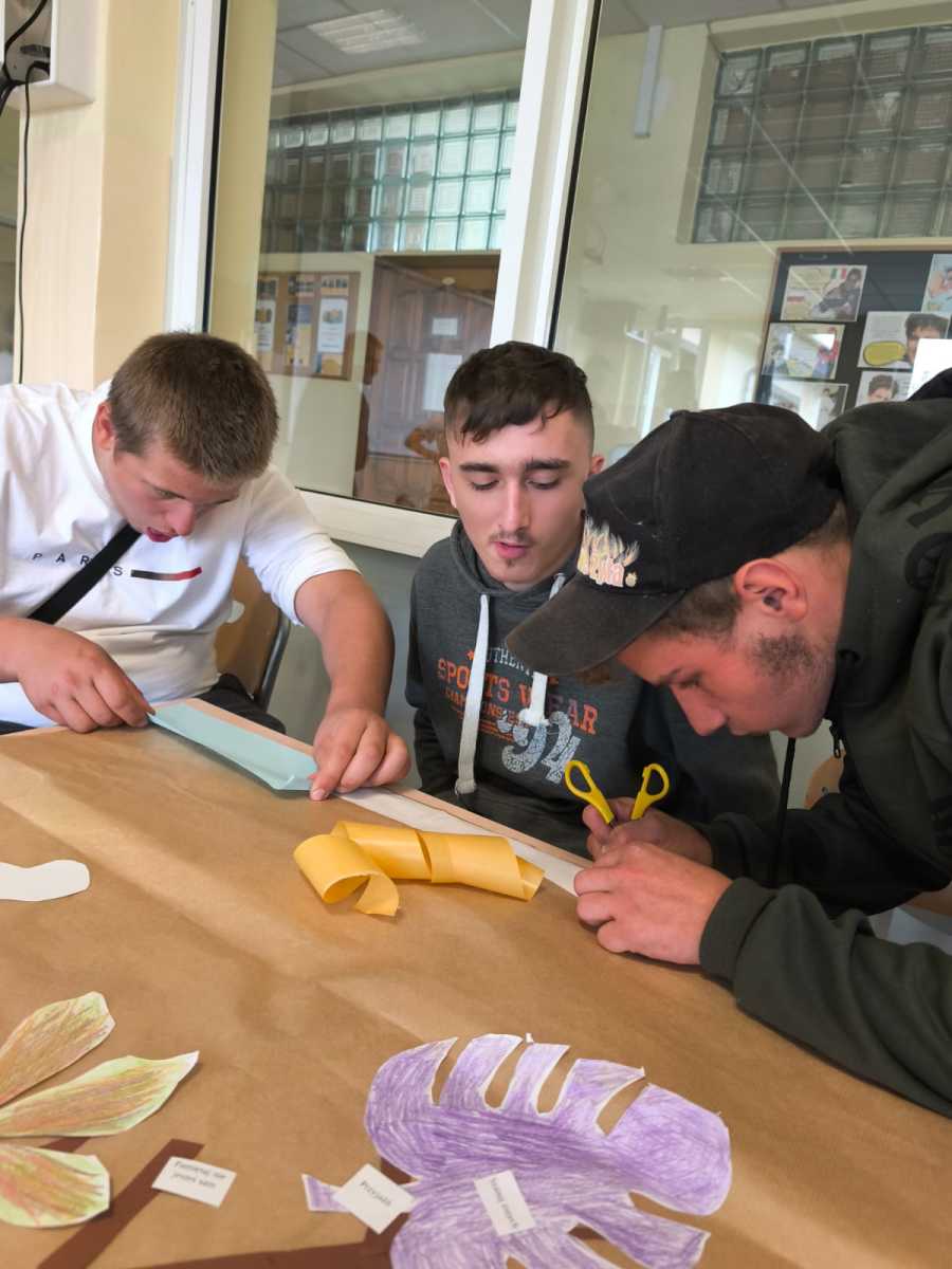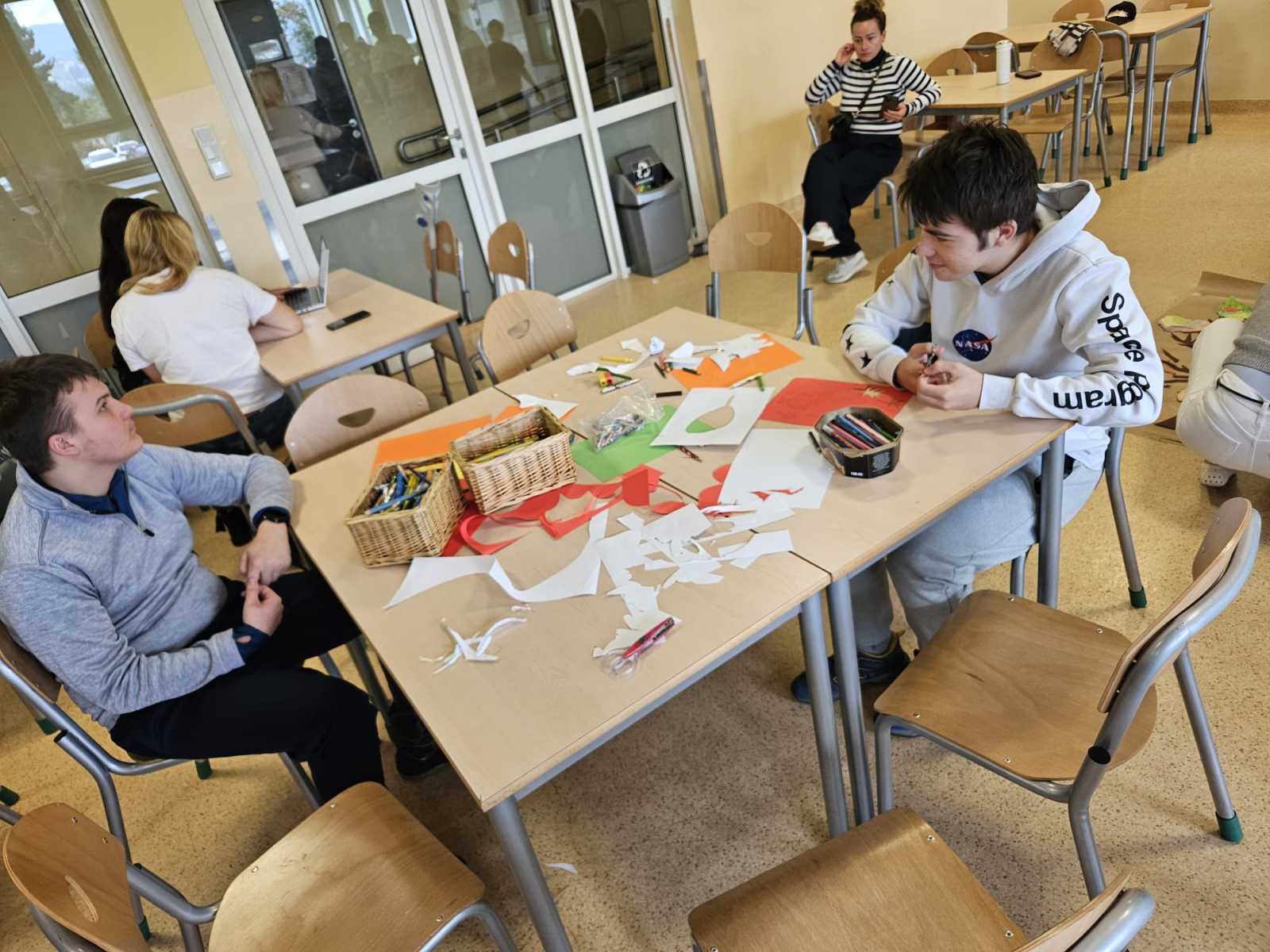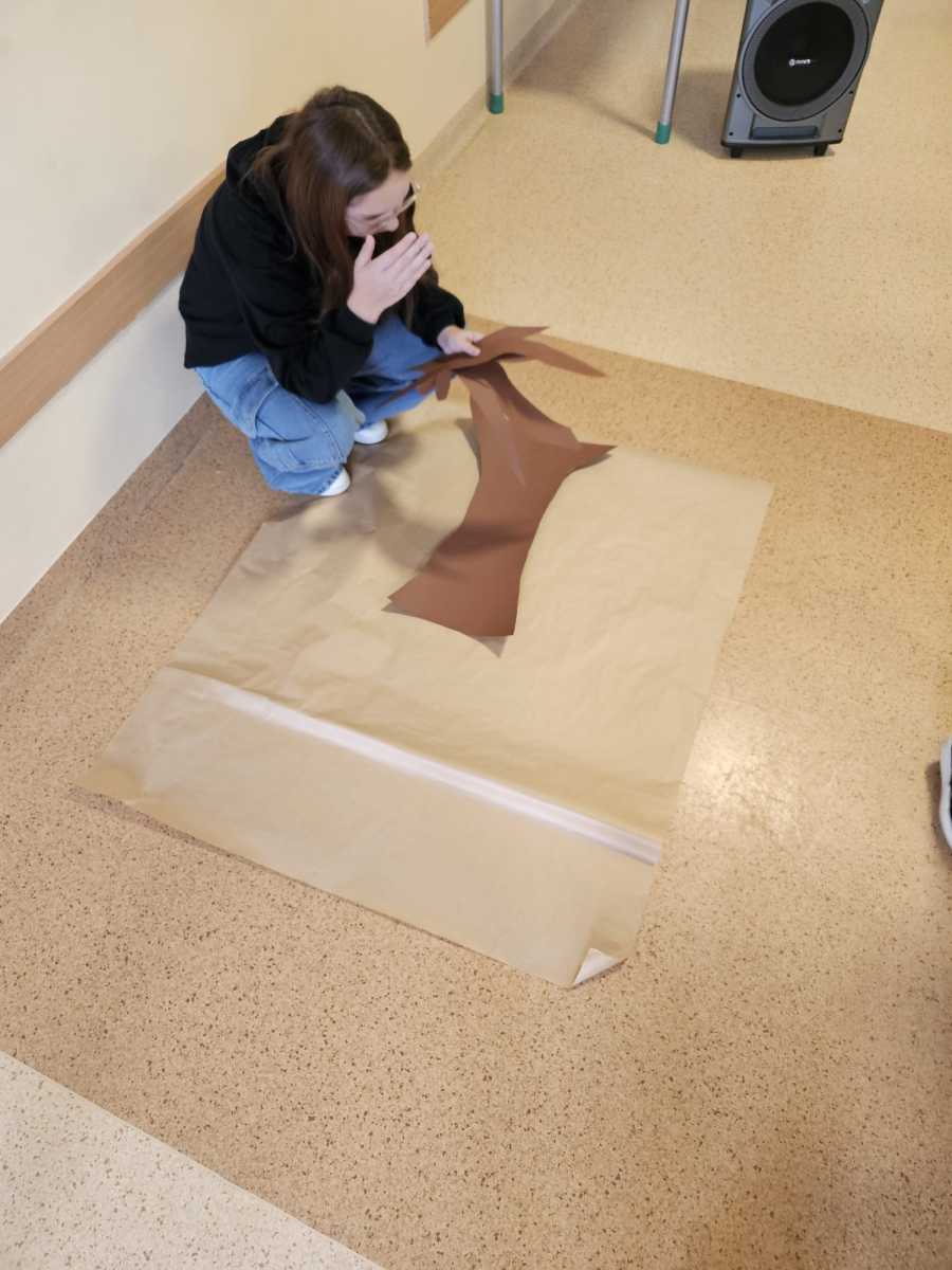 Jednym z zadań było wykonanie jesiennych drzew z hasłami o przeciwdziałaniu przemocy, które młodzież wybierała spośród dobrych i złych słów.