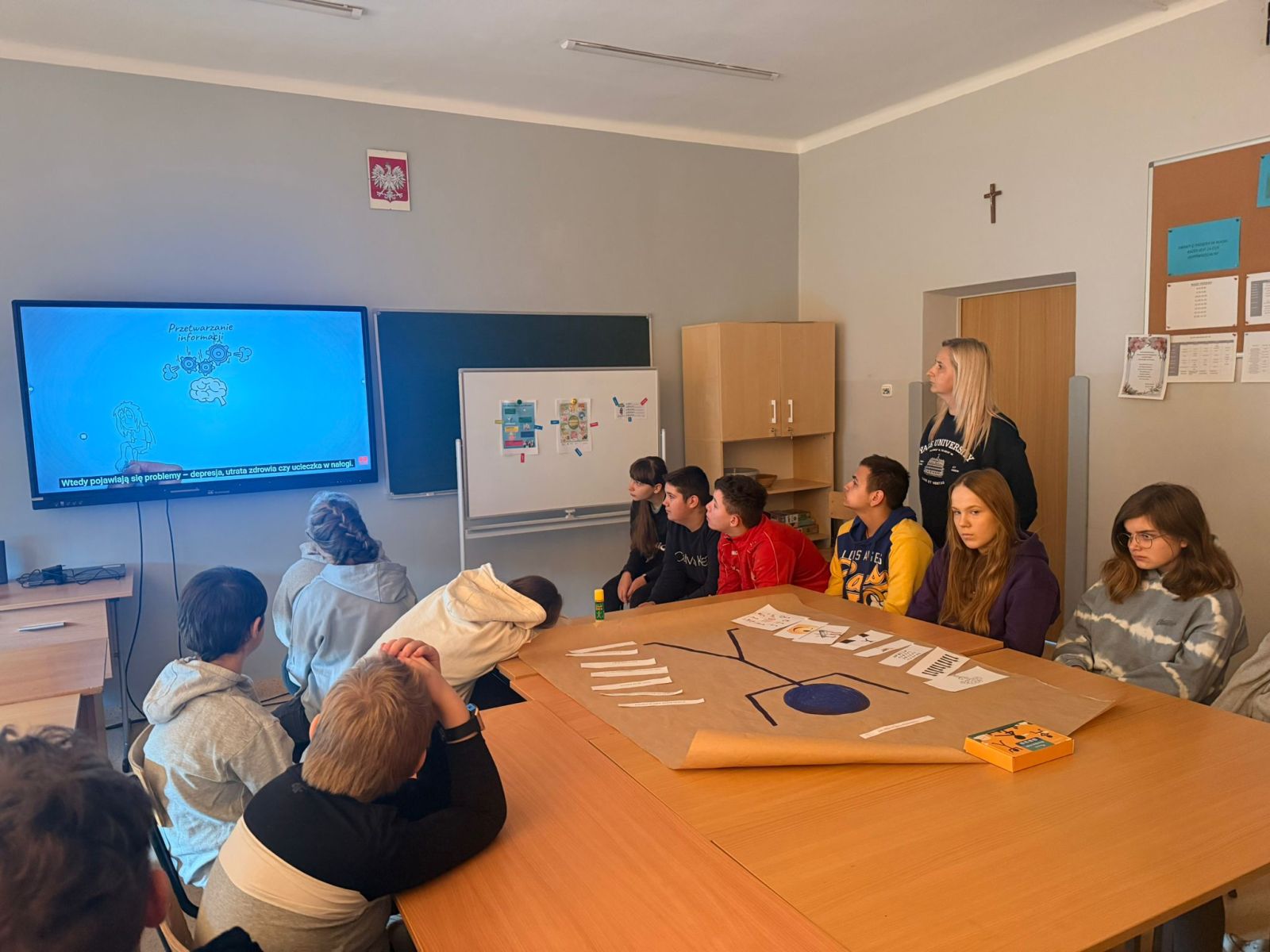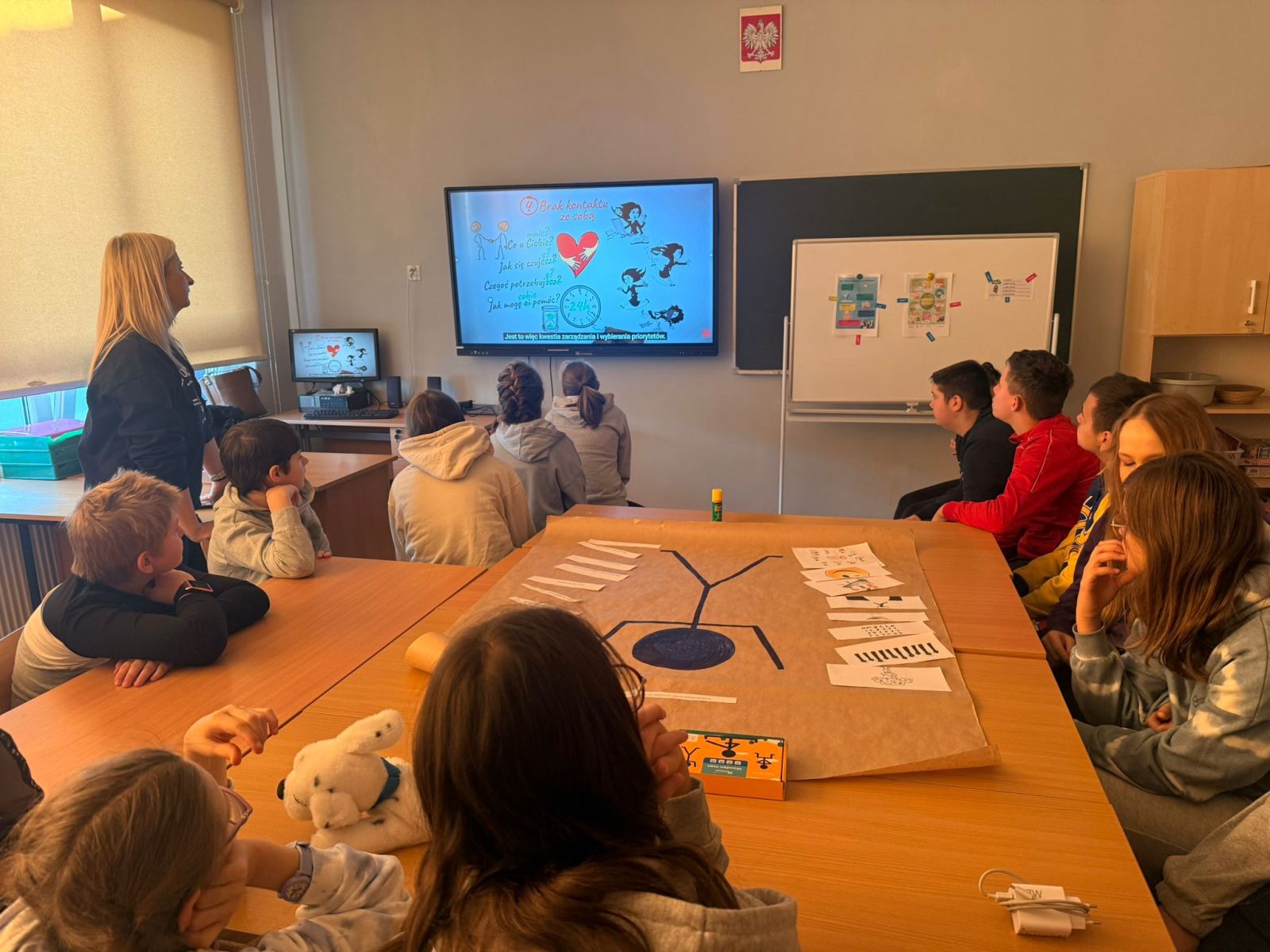 Warto pamiętać, że zdrowie psychiczne nie jest odosobnione od zdrowia fizycznego – obie płaszczyzny się przenikają.  Gdy mamy więcej narzędzi, świadomości i przestrzeni do rozmowy – stajemy się silniejsi, bardziej odporni, bardziej wspierający. W ramach obchodów tego dnia uczniowie Szkoły Podstawowej Nr 9-L uczestniczyli w warsztatach profilaktycznych prowadzonych przez pedagoga i psychologa na temat czynników sprzyjających nabywaniu odporności w zakresie zdrowia psychicznego. Efektem zajęć była stworzona mapa mentalna „Superodporniaka”.Po warsztatach cała społeczność uczniowska udała się na wycieczkę, aby podczas gry terenowej w lesie i aktywnego wypoczynku nad Dunajcem każdy mógł zadbać o swój stan ducha.