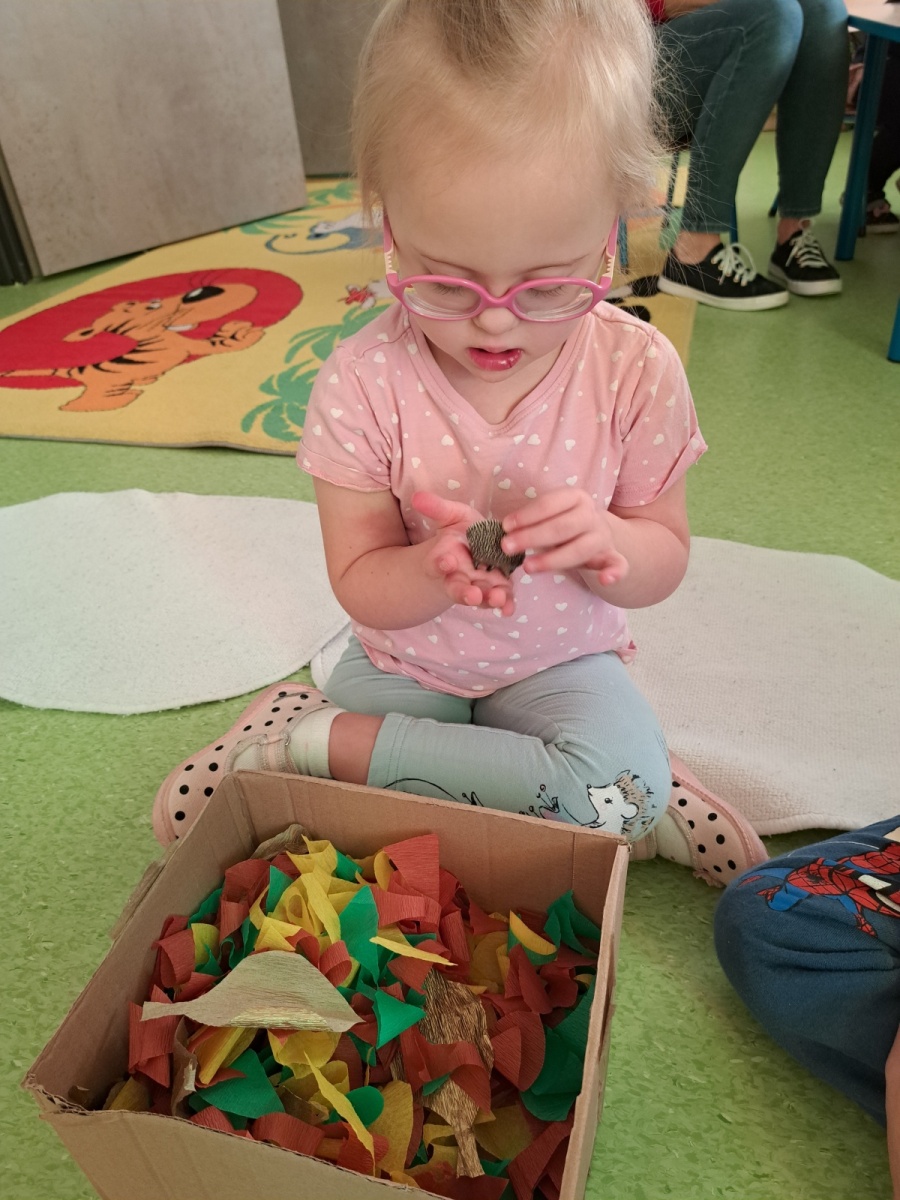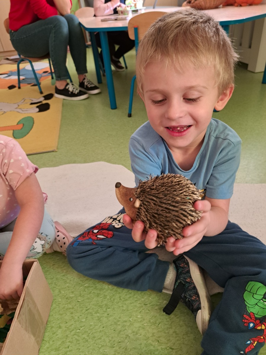 W ostatnim czasie odbyły się zajęcia z okazji Dnia Jeża. Dzieci brały udział w poszukiwaniu ukrytych w liściach jeży, ćwicząc spostrzegawczość i świetnie się przy tym bawiąc. Poznawały również budowę jeża, dowiadując się, jak wygląda, po co ma kolce i jak zwija się w kuleczkę. Przedszkolaki wysłuchały bajki o małym jeżyku, po czym rozmawialiśmy o tym, czym naprawdę żywią się jeże i jakie jedzenie najbardziej im służy. Na zakończenie wszyscy wspólnie zaśpiewali piosenkę „Idzie jeż”, ilustrując ją gestami. To był pełen radości i ciekawych odkryć czas spędzony razem!