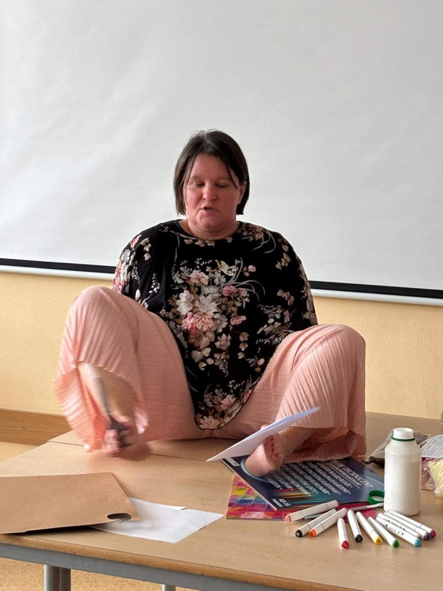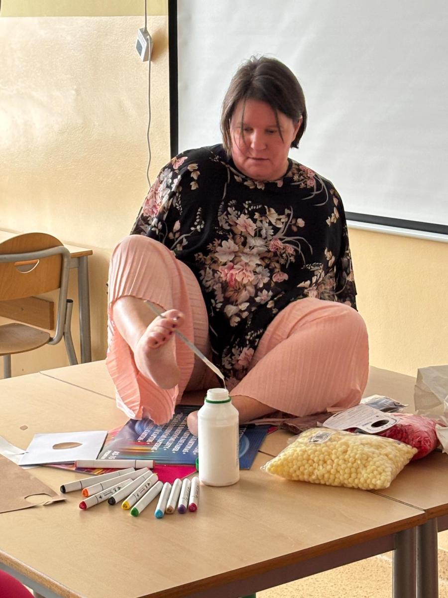 To była dobra okazja, by poznać osobę, która na co dzień pokazuje, że ograniczenia nie przekreślają marzeń ani aktywnego życia.Pani Ania opowiedziała o swojej historii i o tym, jak wygląda codzienność osoby żyjącej bez rąk. Uczniowie dowiedzieli się, jak dzięki wytrwałości i własnym sposobom można wykonywać wiele czynności nogami od prostych prac domowych po tak zaskakujące umiejętności jak prowadzenie samochodu.
