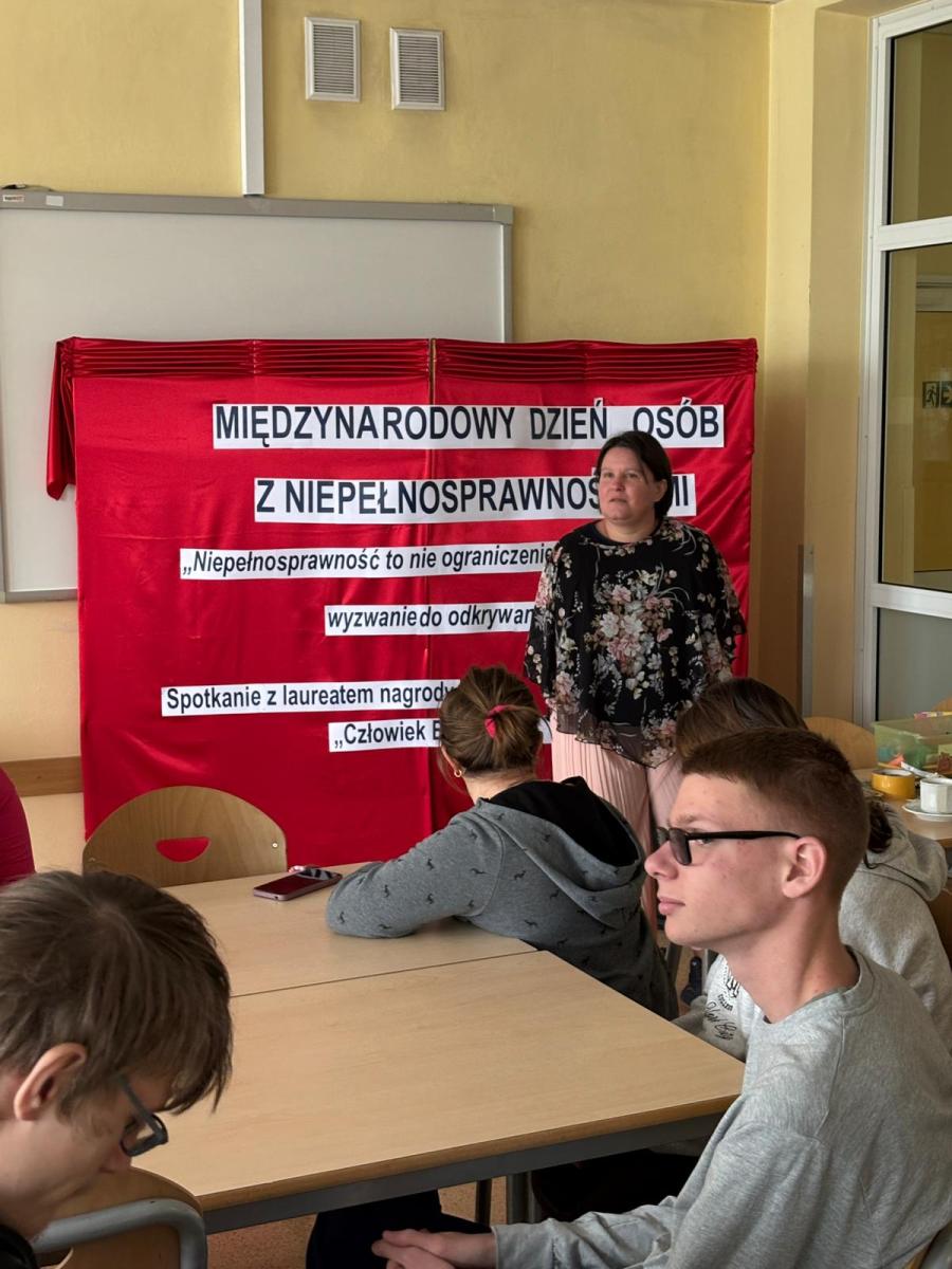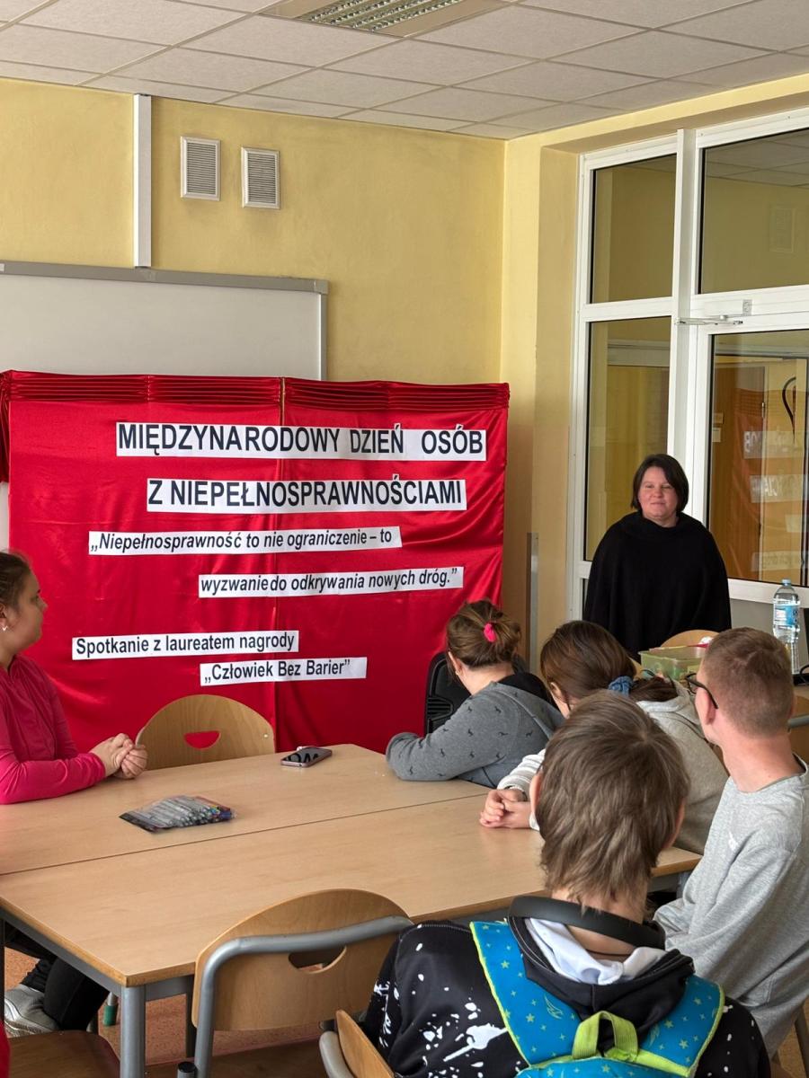Z okazji Międzynarodowego Dnia Osób z Niepełnosprawnościami uczniowie wzięli dziś udział w wyjątkowym spotkaniu z Anną Krupą, tegoroczną laureatką nagrody Człowiek Bez Barier.