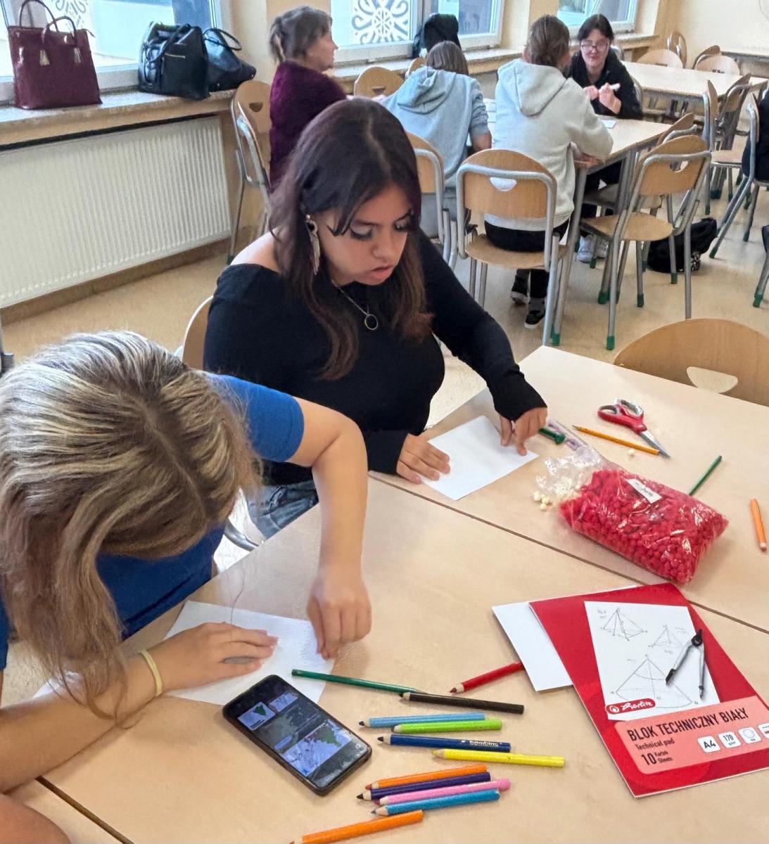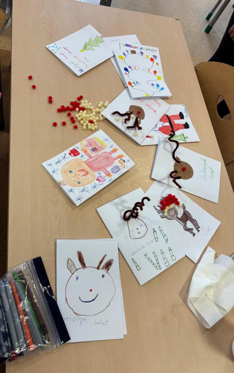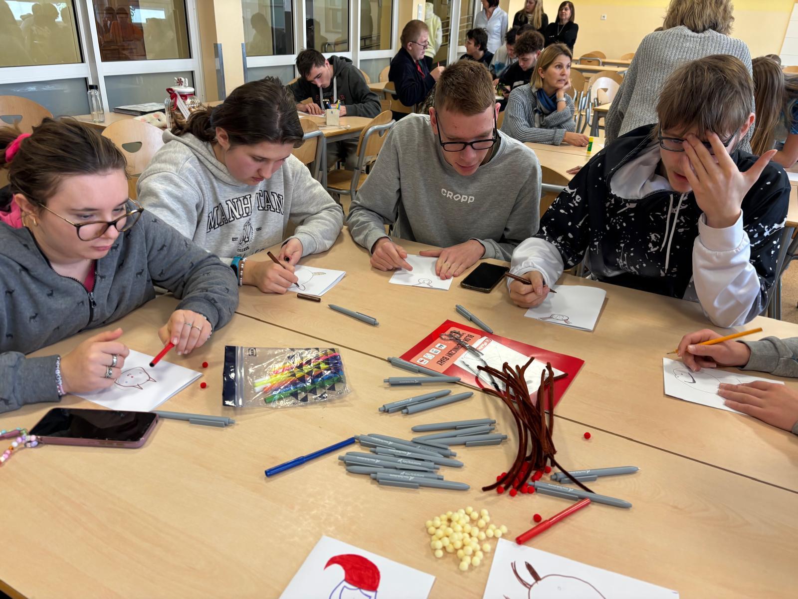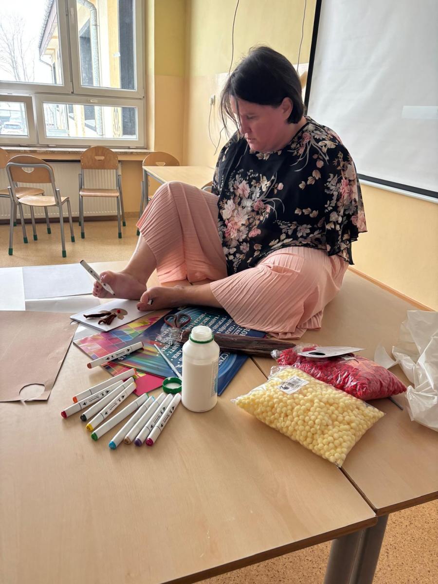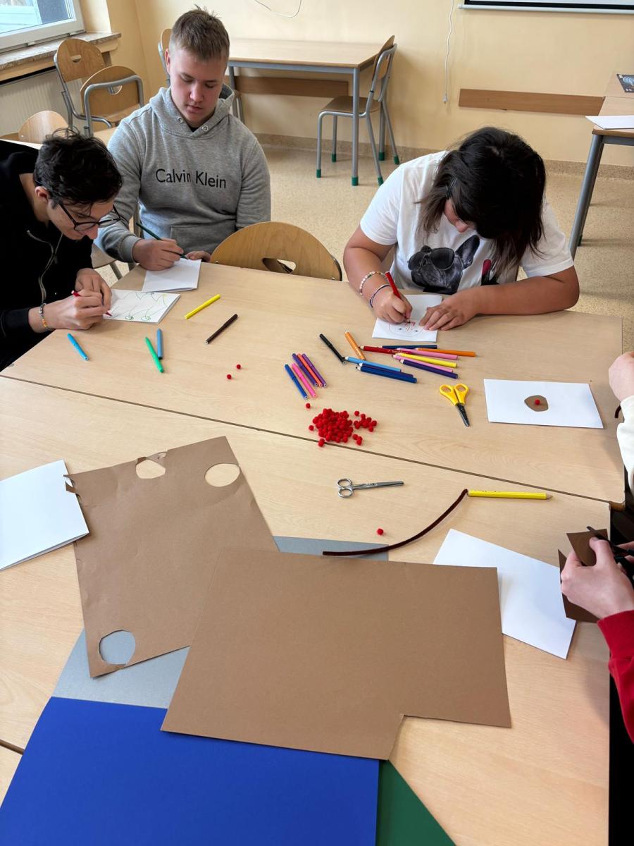 Młodzież słuchała z dużym zainteresowaniem i chętnie dopytywała o różne aspekty jej życia. Spotkanie pokazało, ile siły i poczucia humoru kryje w sobie nasza bohaterka.Po części rozmowy przyszedł czas na wspólne działanie. Uczniowie razem z panią Anią przygotowali świąteczne kartki dla osób potrzebujących. Warsztaty przebiegały w spokojnej atmosferze, a każdy starał się włożyć w swoją pracę odrobinę serca.Dzisiejsze zajęcia były nie tylko lekcją o niepełnosprawności, lecz także o otwartości, wzajemnym wsparciu i tym, jak różne doświadczenia potrafią inspirować. To spotkanie na długo pozostanie w pamięci naszej szkolnej społeczności.