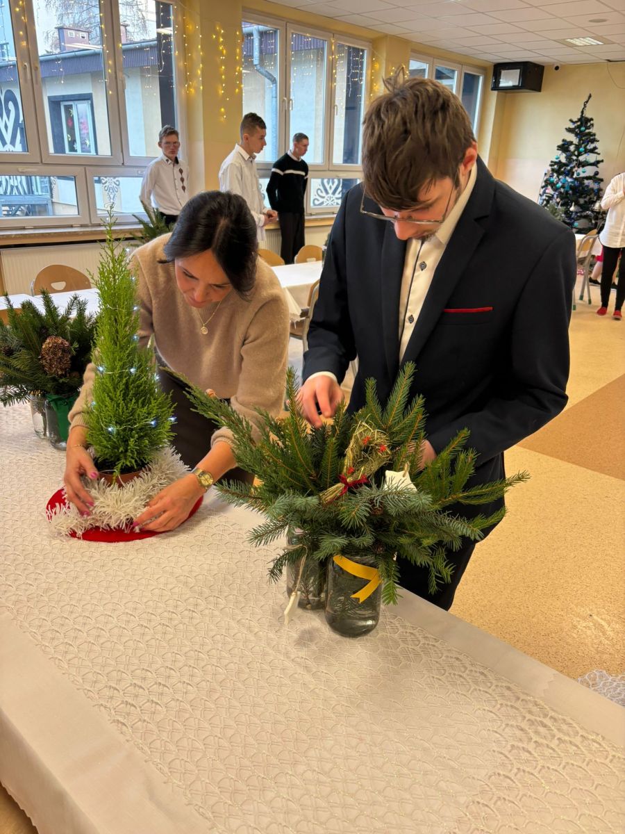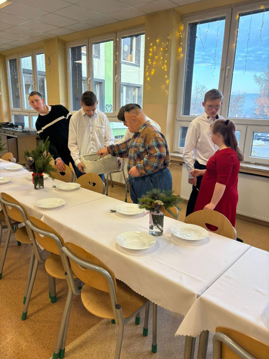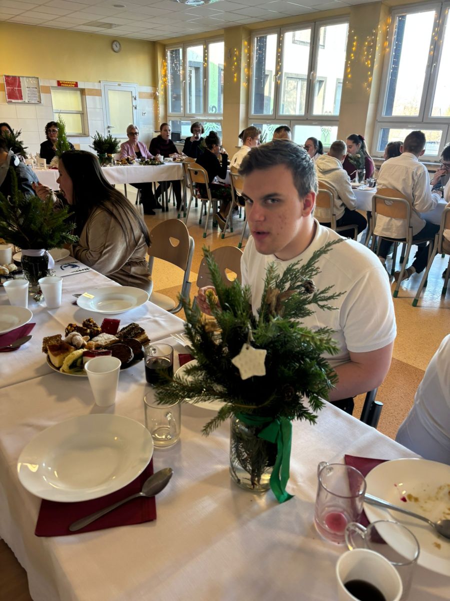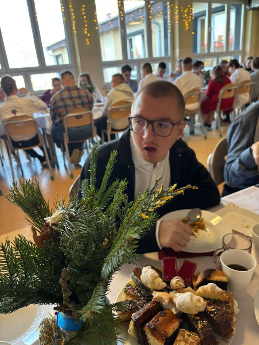 Świąteczne szkolne przygotowania trwały już od wielu dni…pieczenie ciast, ozdabianie pierników, kiszenie barszczu, przygotowanie stroików i ozdób bożonarodzeniowych. To wszystko po to, byśmy dzisiaj – w towarzystwie nauczycieli i uczniów SPdP – mogli usiąść przy wigilijnym stole i cieszyć się magiczną atmosferą. Wspólnie składaliśmy sobie życzenia, łamaliśmy się opłatkiem, śpiewaliśmy kolędy i degustowaliśmy pyszne wigilijne potrawy. Życzymy wszystkim, aby atmosfera świąt Bożego Narodzenia była z nami jak najdłużej, a przy wigilijnym stole nie brakowało uśmiechu, miłości i naszych bliskich. Wesołych Świąt 🙂