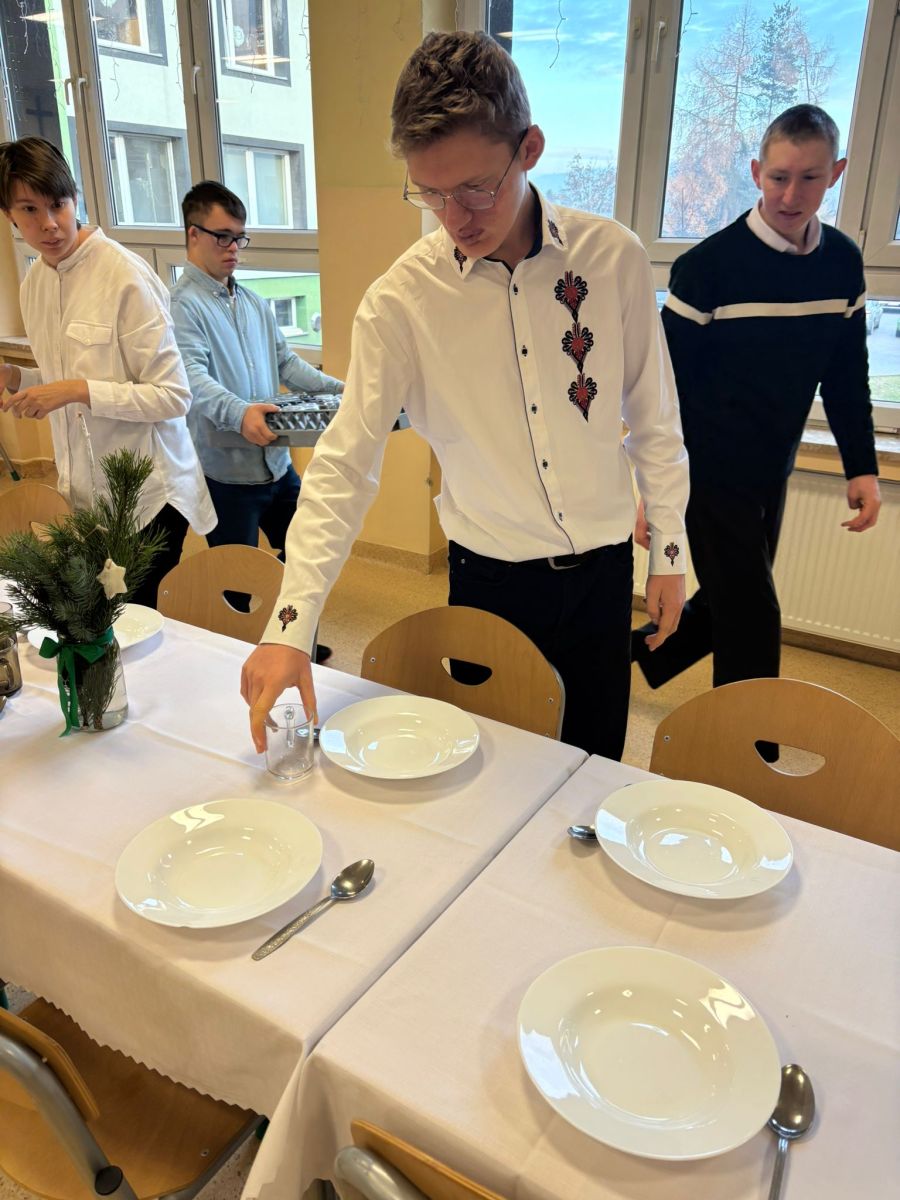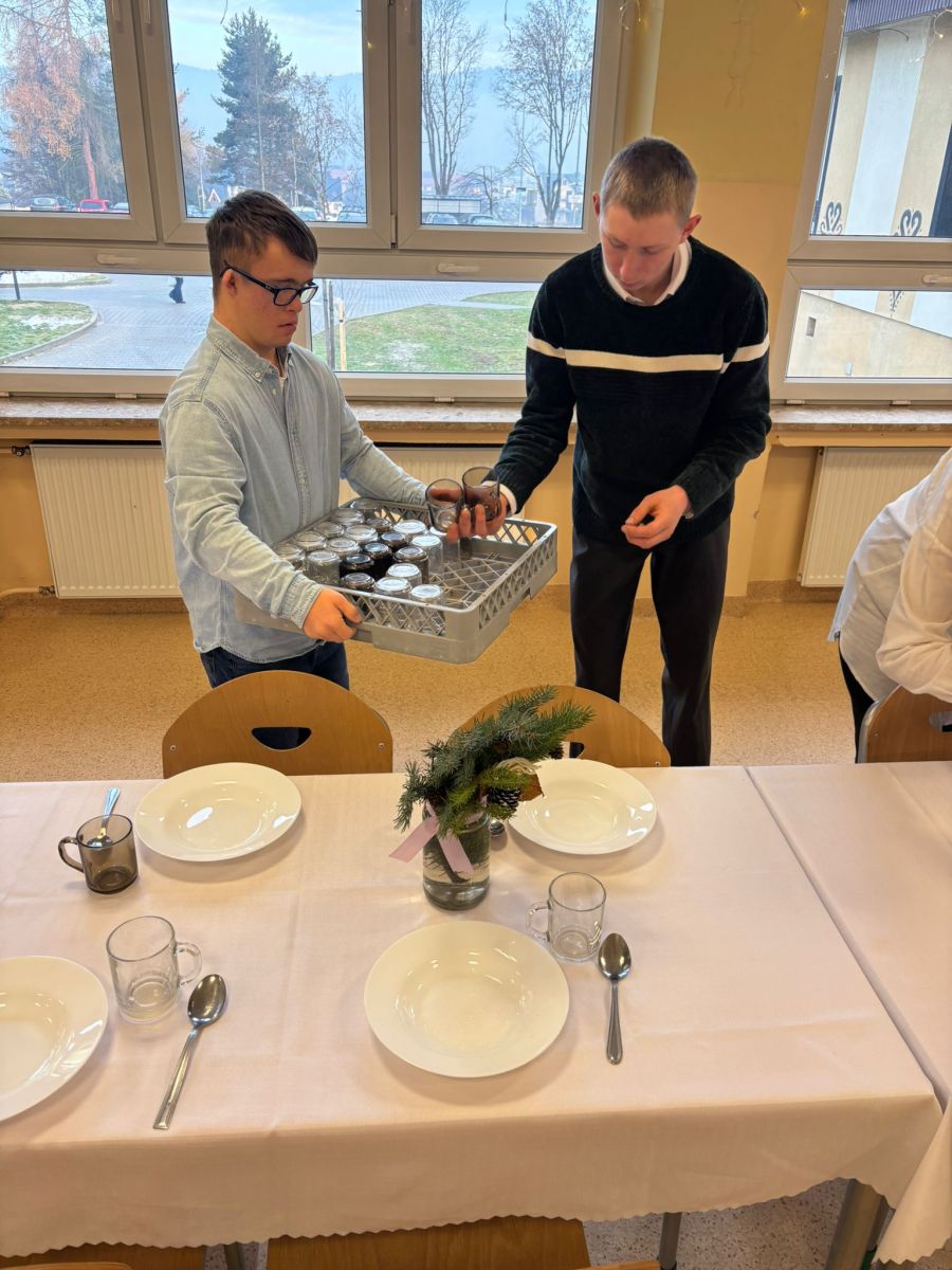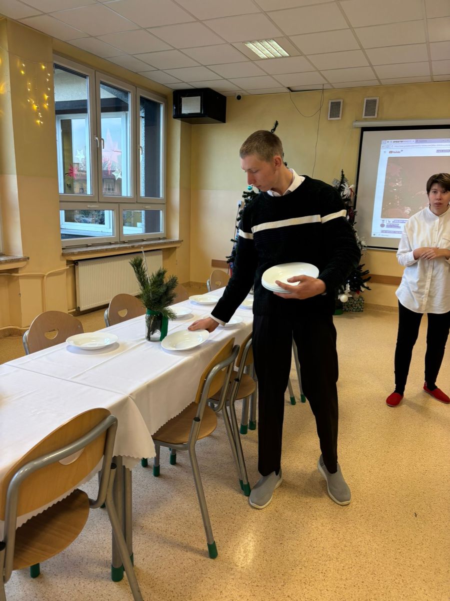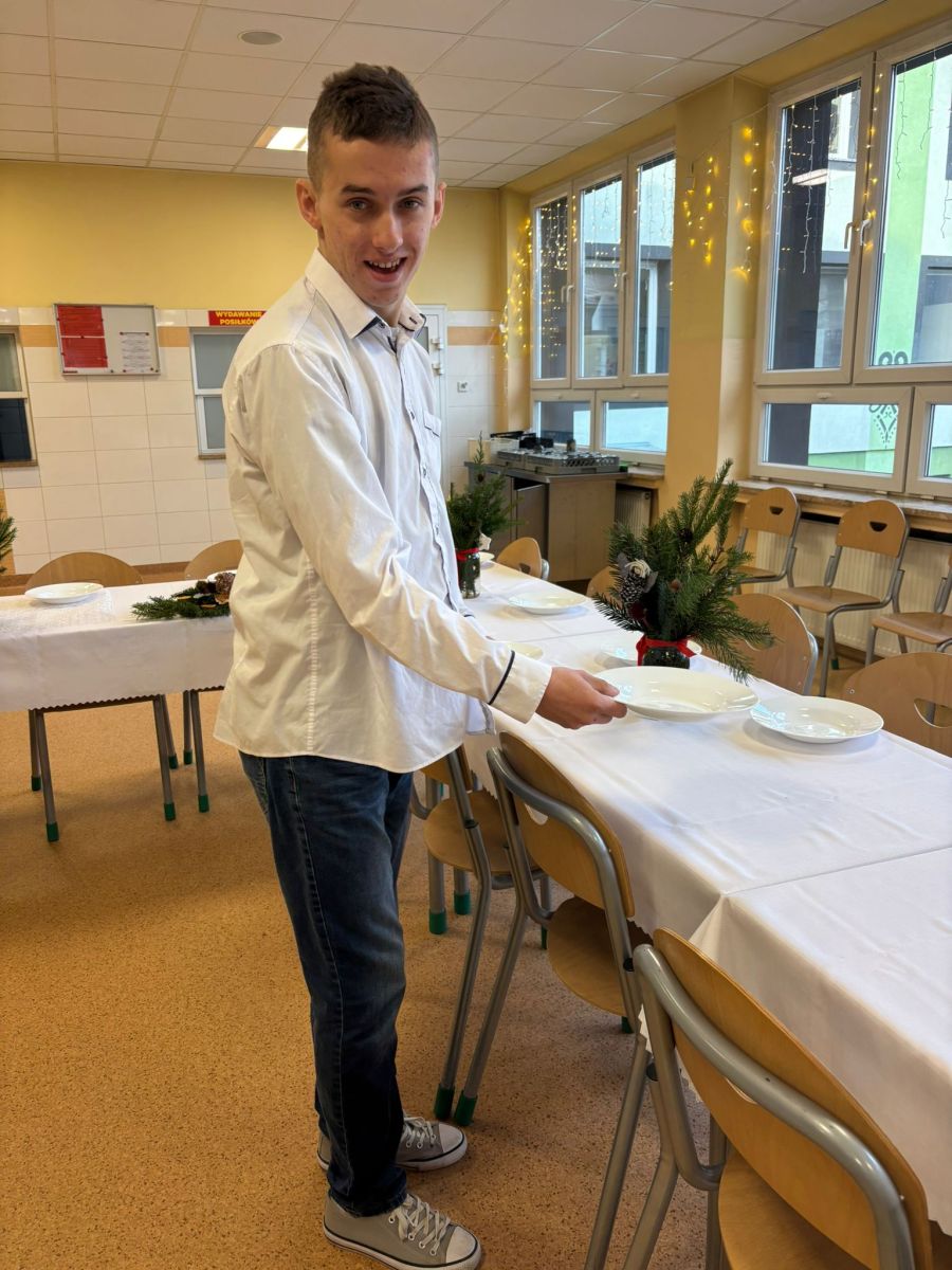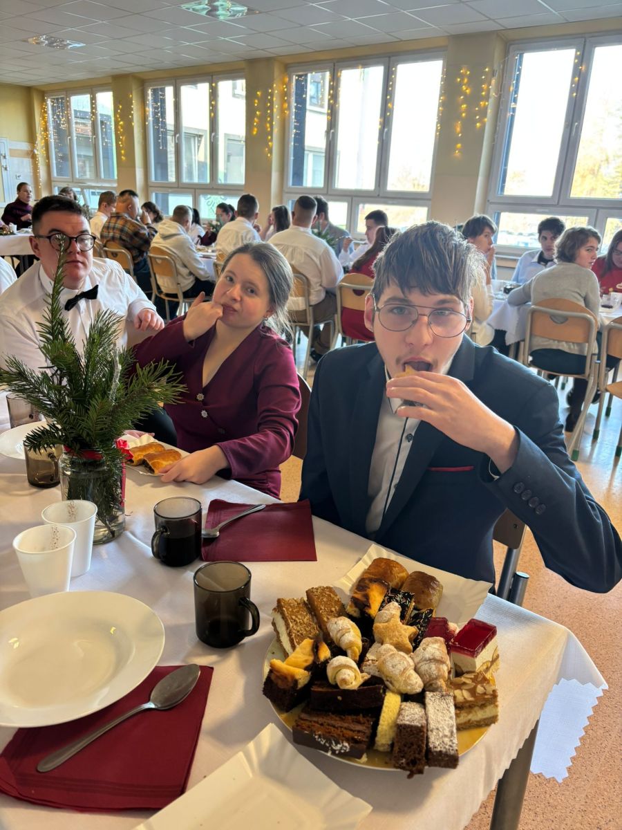 Świąteczne szkolne przygotowania trwały już od wielu dni…pieczenie ciast, ozdabianie pierników, kiszenie barszczu, przygotowanie stroików i ozdób bożonarodzeniowych. To wszystko po to, byśmy dzisiaj – w towarzystwie nauczycieli i uczniów SPdP – mogli usiąść przy wigilijnym stole i cieszyć się magiczną atmosferą. Wspólnie składaliśmy sobie życzenia, łamaliśmy się opłatkiem, śpiewaliśmy kolędy i degustowaliśmy pyszne wigilijne potrawy. Życzymy wszystkim, aby atmosfera świąt Bożego Narodzenia była z nami jak najdłużej, a przy wigilijnym stole nie brakowało uśmiechu, miłości i naszych bliskich. Wesołych Świąt 🙂