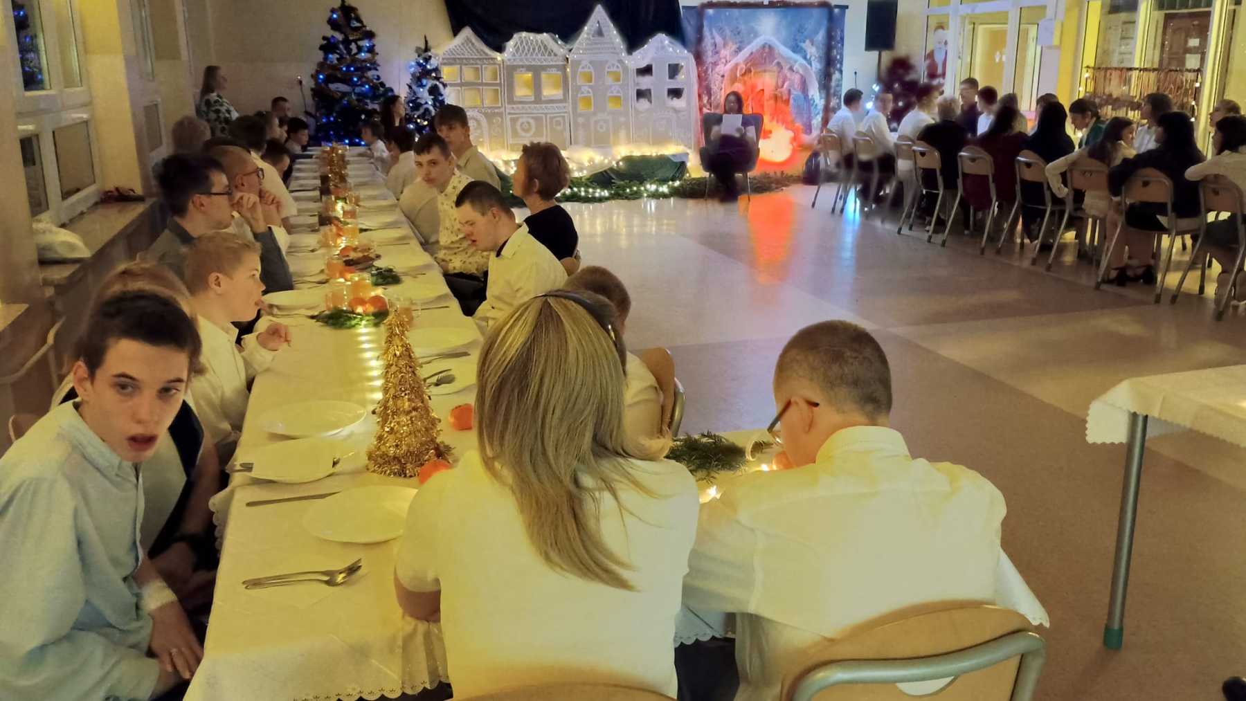 Jak w domu. Najpierw przygotowania. Wspólnie. Razem – jak w rodzinie. Przyszli goście, przyjaciele. Potem historia prawdziwa Bożego Narodzenia. Opłatek, życzenia, wzruszenia. Wspólny posiłek. Prezenty i kolędowanie. Wieczór magiczny nie tylko dla wychowanków.