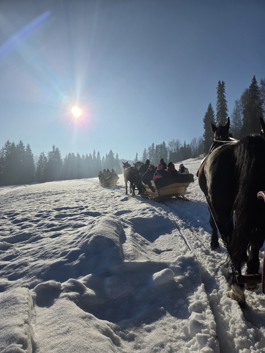 Uczniowie wraz z nauczycielami SPdP spędzili dzisiaj piękne chwile na kuligu. Towarzyszyła im piękna, słoneczna pogoda i cudowna atmosfera. Bardzo dziękujemy Rodzicom Maćka – Państwu Annie i Krzysztofowi Dziubasom – za wspaniałe emocje i niezapomniane przeżycia.