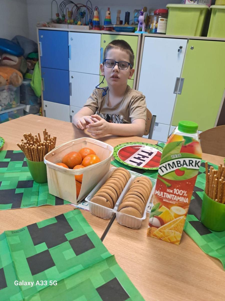 W tym dniu popłynęły najlepsze życzenia oraz moc uścisków od koleżanek i kolegów. Dzieci zaśpiewały sto lat i złożyły życzenia solenizantowi. Szymonowi jeszcze raz życzymy uśmiechu, radości samych szczęśliwych chwil oraz dużo zdrówka. Rodzicom składamy podziękowanie za pysznego torta oraz słodkości dla dzieci.