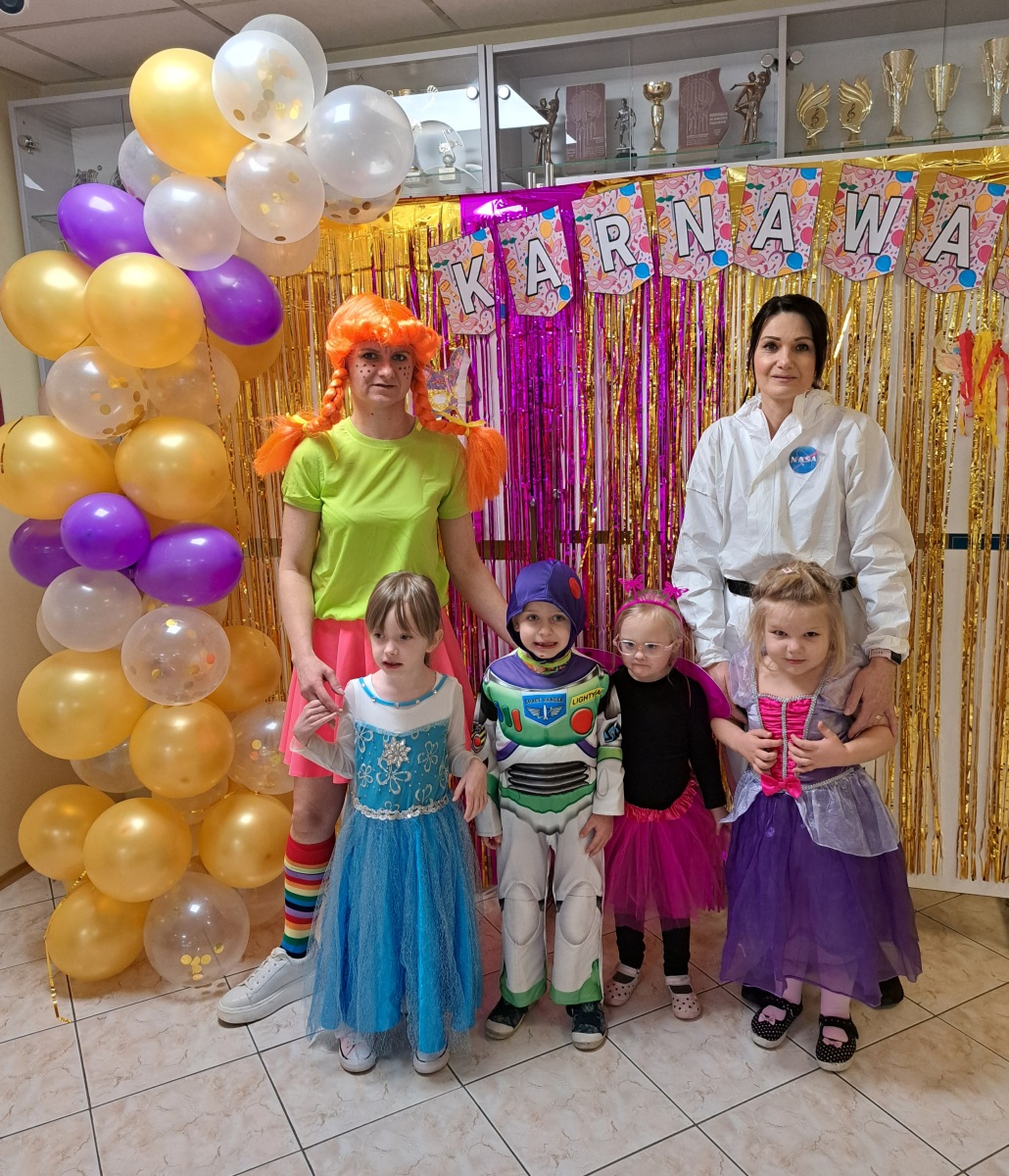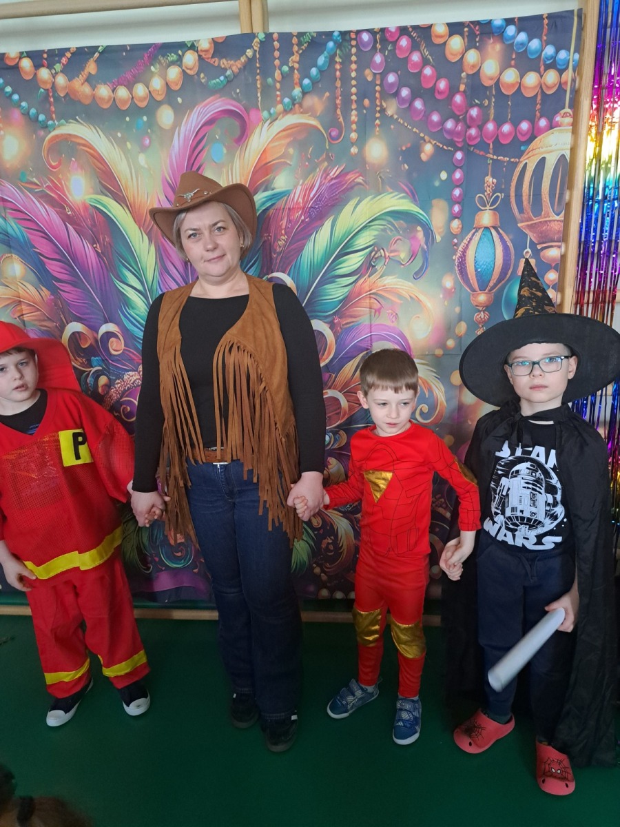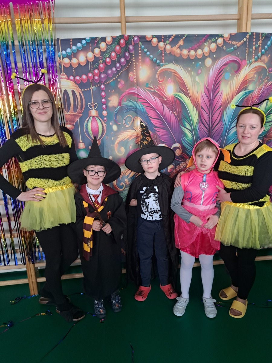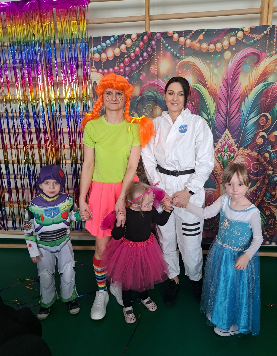 Nasze przedszkolaki bawiły się znakomicie na tegorocznym balu. Były piękne, kolorowe stroje, mnóstwo tańców i śmiechu, a do tego słodki poczęstunek, który dodał energii do dalszej zabawy. Radość na twarzach dzieci – bezcenna! Serdecznie dziękujemy organizatorom za zaproszenie na wspólną zabawę oraz rodzicom za zorganizowanie dzieciom przepięknych karnawałowych strojów.