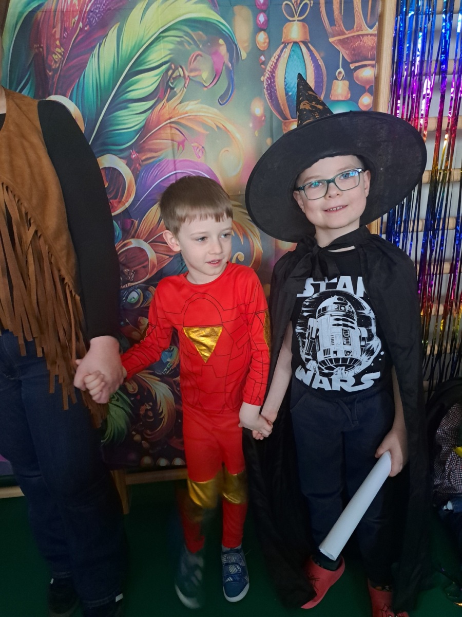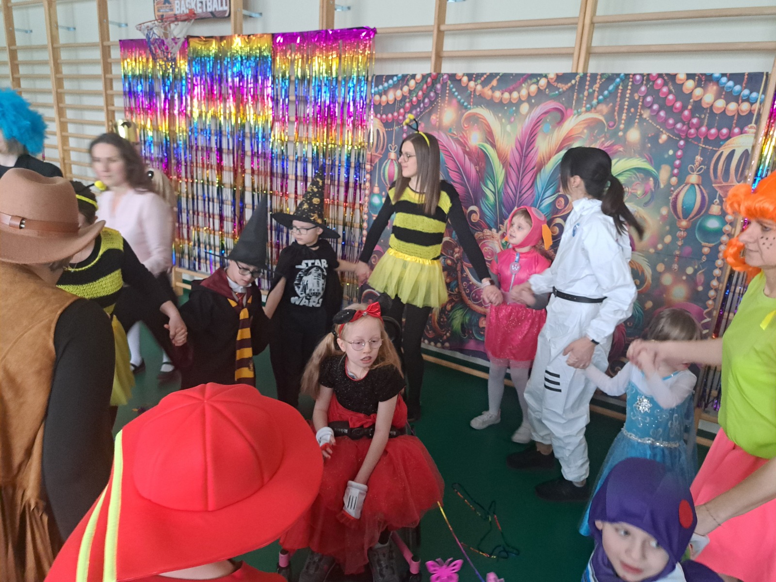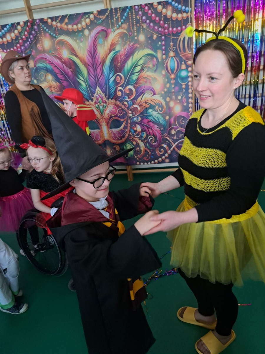 Nasze przedszkolaki bawiły się znakomicie na tegorocznym balu. Były piękne, kolorowe stroje, mnóstwo tańców i śmiechu, a do tego słodki poczęstunek, który dodał energii do dalszej zabawy. Radość na twarzach dzieci – bezcenna! Serdecznie dziękujemy organizatorom za zaproszenie na wspólną zabawę oraz rodzicom za zorganizowanie dzieciom przepięknych karnawałowych strojów.