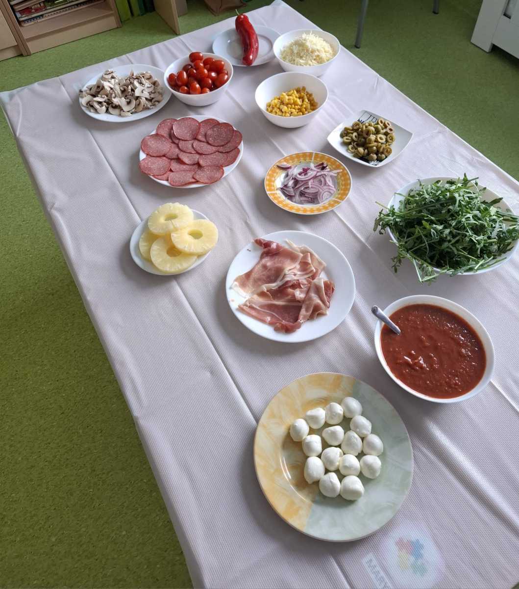 W tym dniu przedszkolaki poznały historię tego dania tworząc pracę plastyczną oraz bawiąc się w prawdziwych kucharzy. Wspólnie przygotowaliśmy pizze ze składników, które lubimy najbardziej. Tego dnia było pysznie, miło i kolorowo!