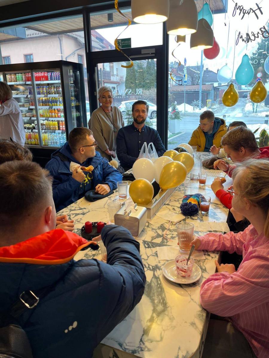Niespodzianką, bardzo nieoczekiwaną, było dla nas zaproszenie właściciela Bistro Piekarni RU-SNACK na słodki poczęstunek. Dzień był mroźny; wracaliśmy zmarznięci z zajęć warsztatowych w Bibliotece, kiedy szeroko otworzyły się drzwi Piekarni i miły głos zaprosił nas do środka. Zostaliśmy poczęstowani pysznymi drożdżówkami i świeżym sokiem owocowym oraz mieliśmy możliwość rozgościć się na kilkadziesiąt minut w ciepłej, przyjaznej atmosferze. Dziękujemy Panu Marcinowi Rusnakowi za miły gest, smaczny poczęstunek i serdeczny uśmiech.