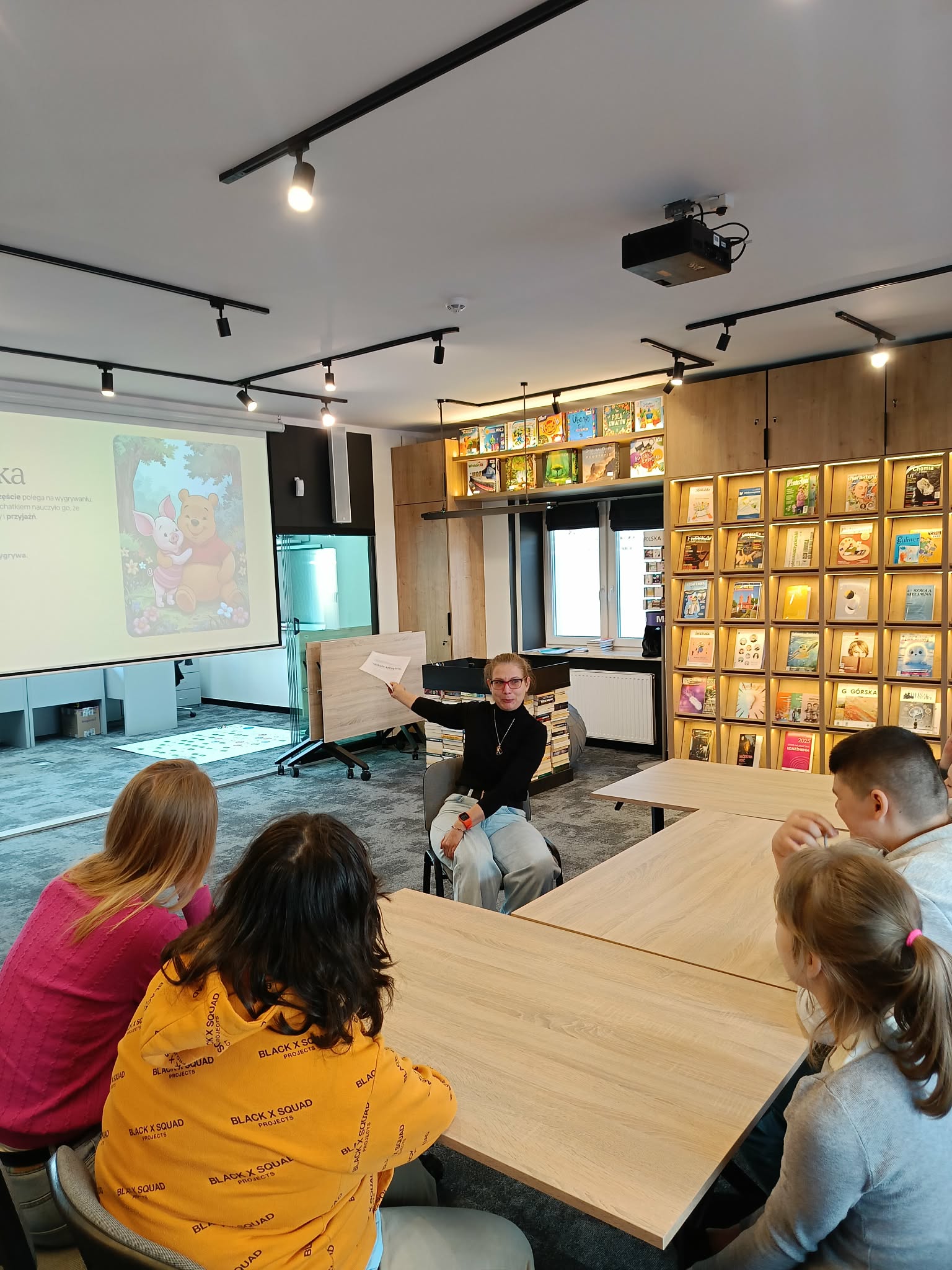 W przeddzień Międzynarodowego Dnia Szczęścia uczniowie klasy 2a i 6b uczestniczyli w cyklicznych zajęciach organizowanych w Wojewódzkiej Bibliotece Publicznej. Spotkanie poświęcone było tematowi szczęścia – dzieci wspólnie zastanawiały się, czym ono jest, jak je okazujemy oraz z czego czerpiemy radość na co dzień. Podczas zajęć uczniowie wysłuchali historii o Prosiaczku, który początkowo uważał, że szczęście polega na wygrywaniu. Dzięki spotkaniu z Kubusiem Puchatkiem odkrył jednak, że prawdziwe szczęście kryje się w przyjaźni, wspólnych przeżyciach i codziennych przygodach. Zajęcia przebiegały w radosnej atmosferze – nie zabrakło uśmiechu, zabaw i niespodzianek. Dzieci aktywnie uczestniczyły w spotkaniu i wróciły z niego pełne pozytywnych emocji.