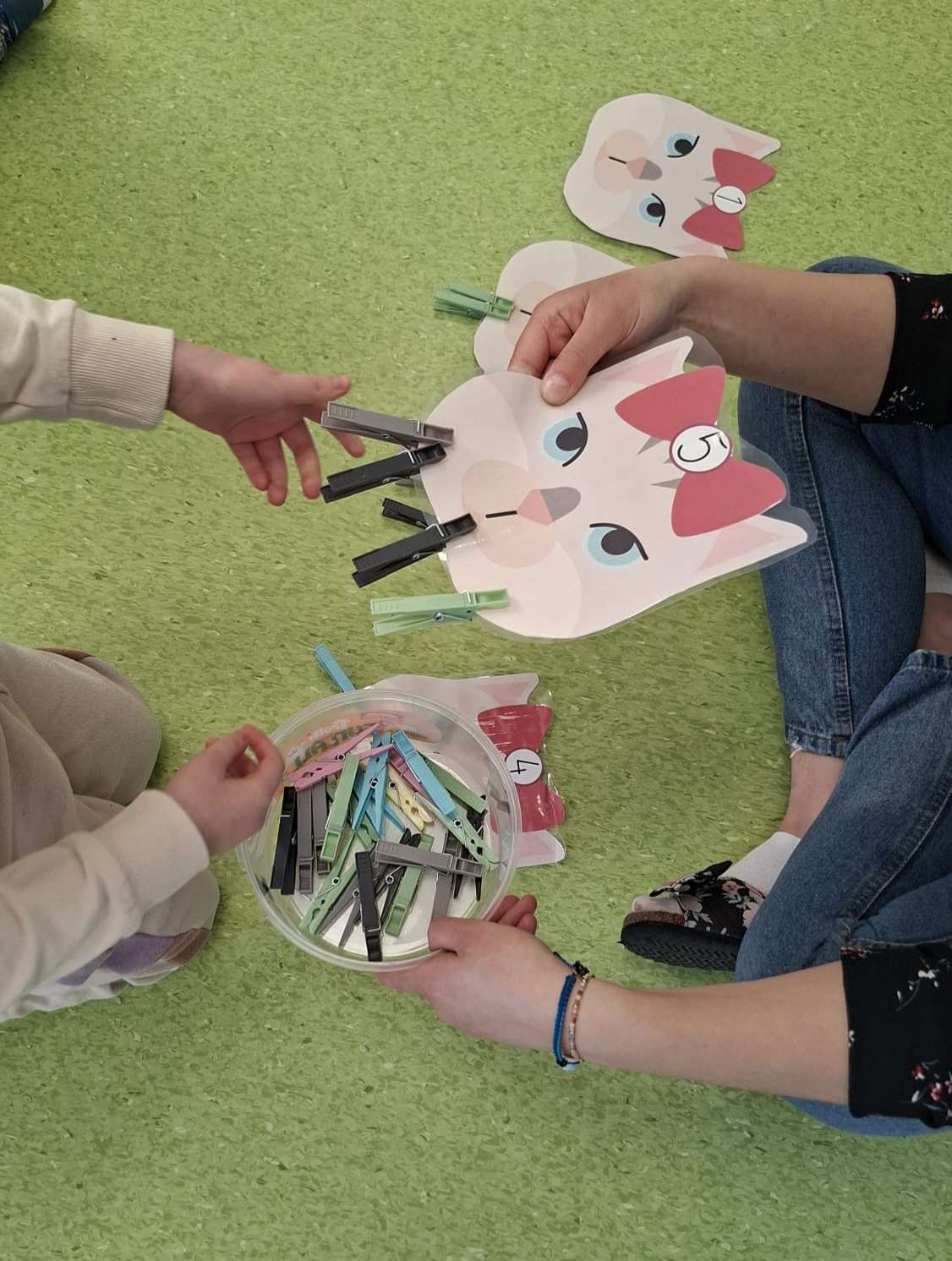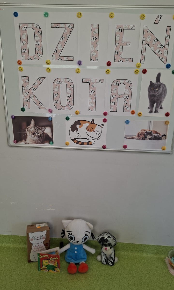 Obchodziliśmy w naszym przedszkolu wyjątkowy Dzień Kota! Dzieci na podstawie plansz dowiedziały się, czego potrzebuje kot, jak wygląda oraz jakie są różne rasy kotów. Nie zabrakło także aktywności rozwijających sprawność manualną – przedszkolaki ćwiczyły motorykę małą, łapiąc myszki oraz zapinając klamerkowe „kocie wąsy”. Świetnie poradziły sobie również z dobieraniem jednakowych obrazków kotów w pary. Podczas zabaw z latarką dzieci odkrywały, co jedzą koty, a układanie kocich puzzli sprawiło im wiele radości i satysfakcji. To był dzień pełen uśmiechu, zabawy i nowych doświadczeń!