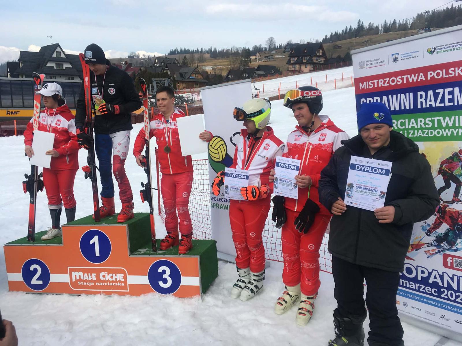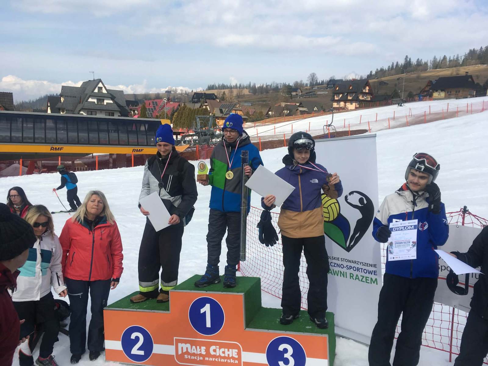 W dniach 3–4 marca 2026 roku stacja narciarska Małe Ciche stała się areną ogólnopolskich zmagań sportowych. To właśnie tutaj odbyły się Mistrzostwa Polski SPRAWNI-RAZEM w narciarstwie alpejskim, które zgromadziły najlepszych zawodników z całego kraju. W zawodach wzięło udział 58 sportowców z różnych województw. Uczestnicy mierzyli się z wymagającymi trasami w dwóch konkurencjach: slalomie oraz slalomie gigancie. Rywalizacja od samego początku była niezwykle zacięta, na stoku królował duch walki, pasja i niesamowita determinacja. Naszą szkołę z dumą reprezentowała sześcioosobowa ekipa, pięciu obecnych uczniów: Martyna I., Tadeusz F., Jan G., Piotr B.,Jan K., oraz jeden absolwent: Krzysztof H. Nasi narciarze zaprezentowali się z najlepszej strony , pokazując swoje umiejętności techniczne, ale i ogromne serce do walki. Efektem ich starań są zdobyte następujące miejsca w odpowiednich kategoriach i konkurencjach: 2 m-ce Piotr B. w slalomie gigancie w kat chłopcy, 6 m-ce Kszysztof H. w slalomie gigancie w kat. mężczyźni 7 m-ce Jan G. w slalomie w kat. chłopcy 7 m-ce Jan K. w slalomie w kat. mężczyźni 8 m-ce Tadeusz F. w slalomie w kat. chłopcy 8 m-ce Martyna I. w slalomie w kat. kobiety 9 m-ce Jan K. w slalomie gigancie w kat. mężczyźni 10 m-ce Jan G., w slalomie gigancie w kat. chłopcy Tak dobra dyspozycja naszych zawodników to wynik systematycznej pracy i regularnych treningów. Nie byłoby to możliwe bez wsparcia wspaniałych ludzi. Składamy ogromne podziękowania rodzinie Dziubas, właścicielom stacji narciarskiej Kaniówka w Białce Tatrzańskiej. Dzięki ich wielkiemu sercu nasi uczniowie mogli doskonalić swoje umiejętności w profesjonalnych warunkach. To właśnie ta możliwość przygotowania się do startów stała się fundamentem naszych tegorocznych sukcesów. Dziękujemy również z całego serca Stowarzyszeniu Dasz Radę działającemu w ZPSWO w Nowym Targu, za ufundowanie transportu, który bezpiecznie dowoził nas na miejsce treningów. Jesteśmy Wam za te gesty niezmiernie wdzięczni! Wszystkim naszym zawodnikom serdecznie gratulujemy uzyskanych wyników oraz postawy godnej prawdziwych mistrzów. Jesteśmy z Was bardzo dumni i już trzymamy kciuki za kolejne starty!