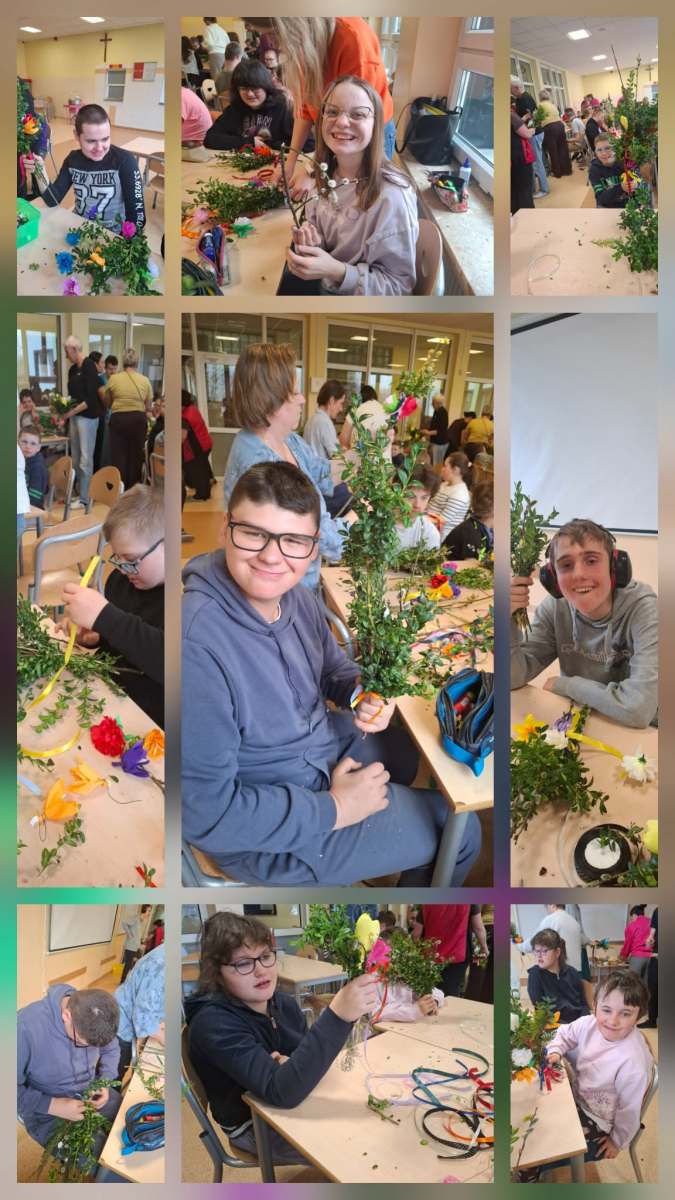 W ramach przygotowań do Świąt Wielkanocnych w naszej szkole odbyły się warsztaty tworzenia palm. Uczniowie z zaangażowaniem przygotowali piękne, kolorowe prace, wprowadzając się w świąteczny nastrój. Każdy uczestnik opuścił warsztaty z własnoręcznie wykonaną, barwną palmą.