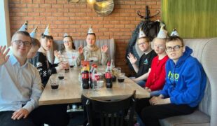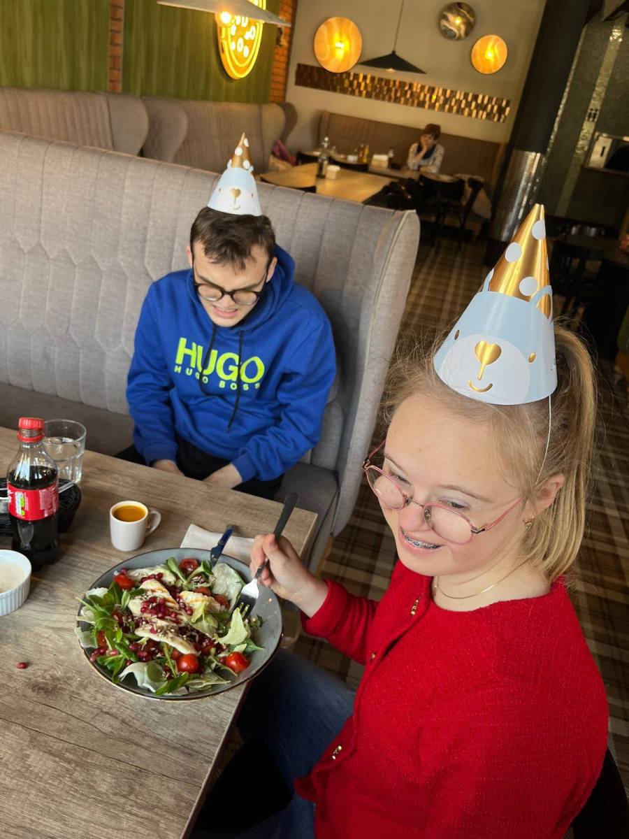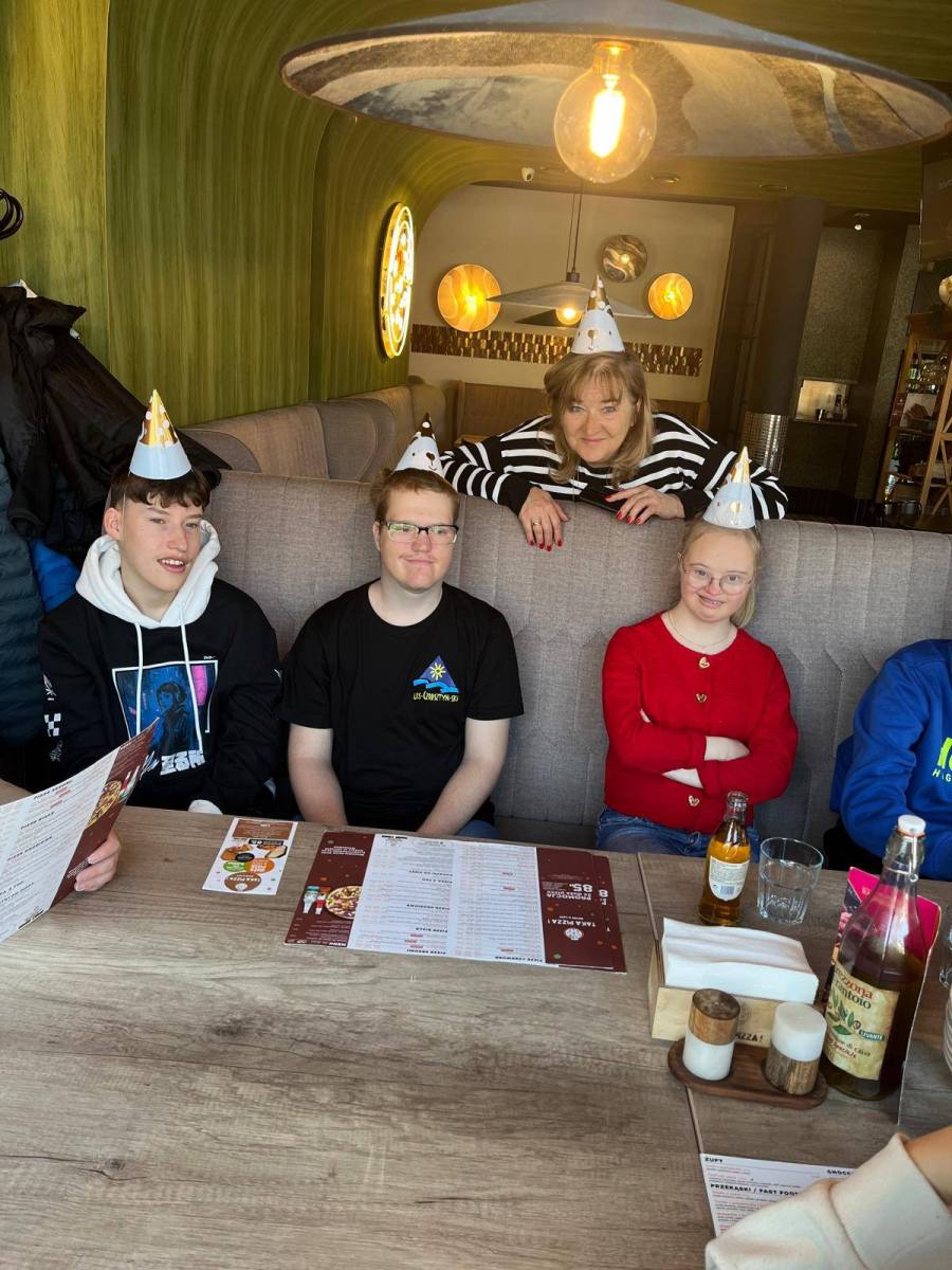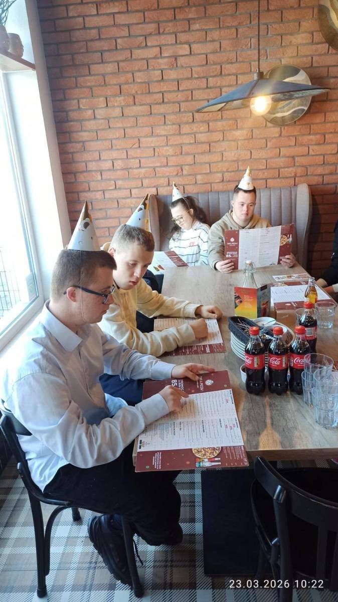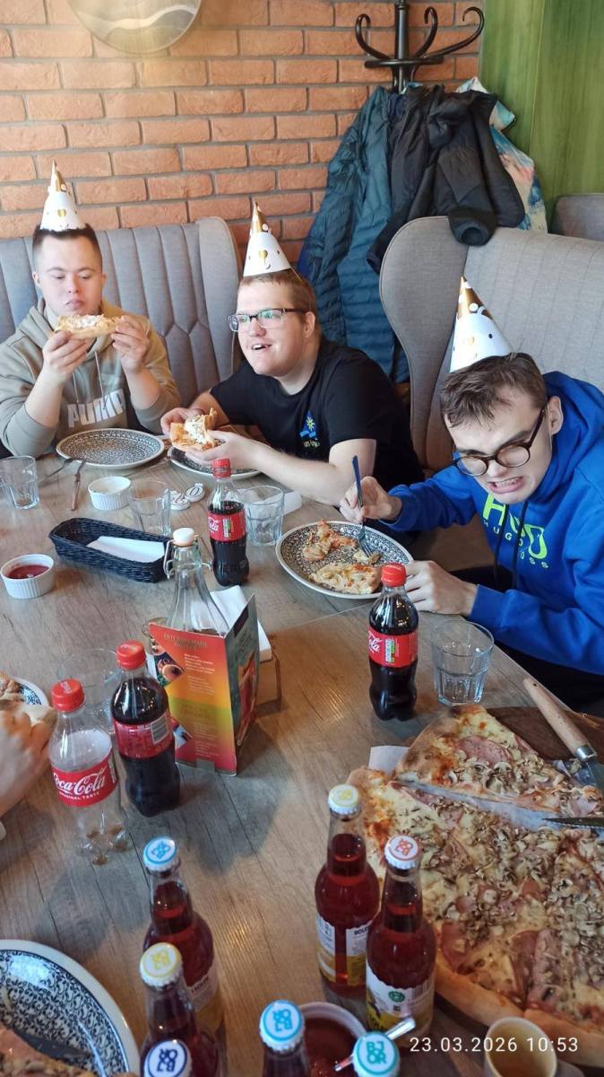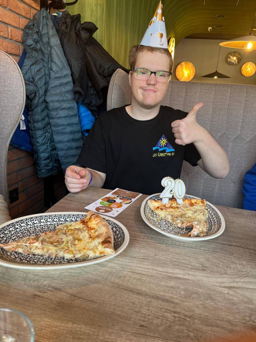 Nasz kolega, Krystian, obchodził niedawno swoje dwudzieste urodziny. Celebrowaliśmy je może trochę nietypowo, bo w pizzerii ,,Taka pizza” – ale bardzo nam się taki sposób świętowania urodzin podobał. Było dmuchanie świeczek na pizzy, życzenia, była degustacja ,,do rozpuku”, były rozmowy, radość i wspólnie spędzony czas. Dziękujemy mamie Krystiana za pomoc w sfinansowaniu naszej imprezy: oet 8b i 8c.