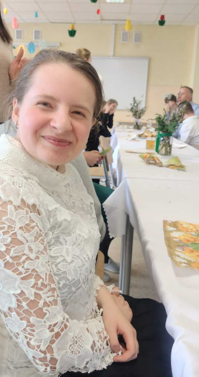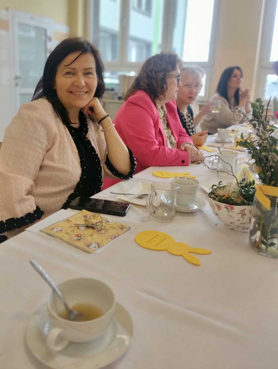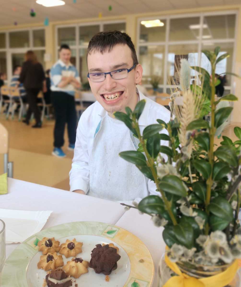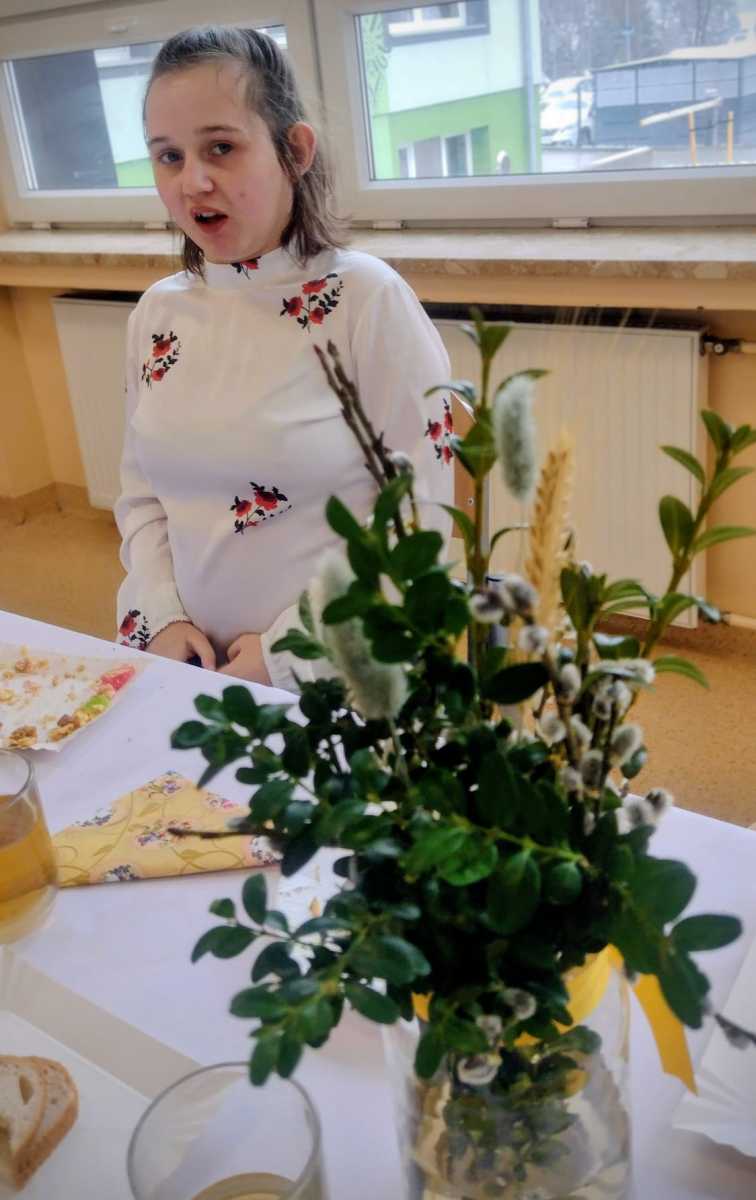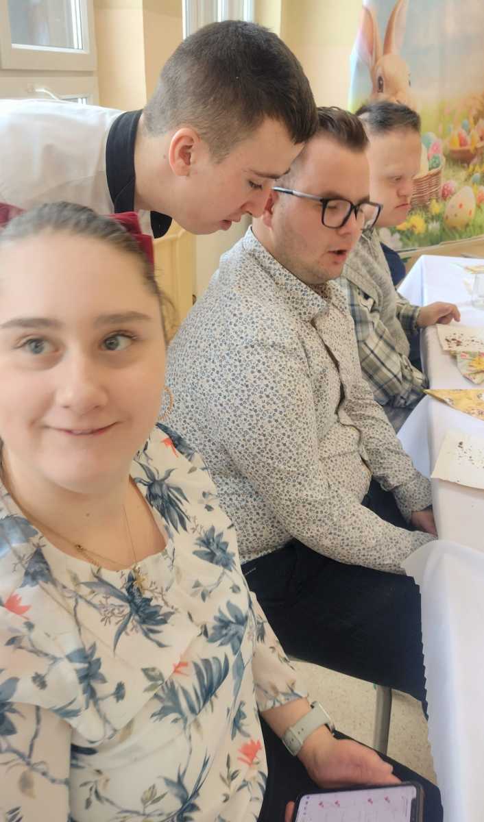 Dnia 27 marca cała społeczność Szkoły Przysposabiającej do Pracy wraz z Dyrekcją i nauczycielami spotkała się na wspólnym śniadaniu wielkanocnym. Po świątecznych życzeniach, zasiedliśmy do stołów. Było pysznie i bardzo rodzinnie – na stołach królowała sałatka śledziowa, jajka z sosem chrzanowym i szczypiorkiem przygotowane przez naszych uczniów na zajęciach kulinarnych oraz mnóstwo wspaniałych ciast, a do tego pyszna kawa. Za te słodkie pyszności z całego serca dziękujemy Rodzicom naszych uczniów.
