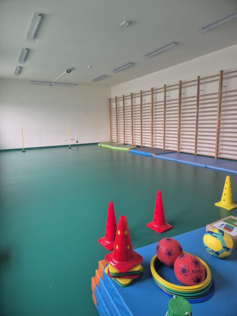 Sala gimnastyki korekcyjnej zapewnia uczniom, odpowiedni do ich potrzeb i psychofizycznych możliwości form ruchu, a tym samym pełny, harmonijny rozwoju.